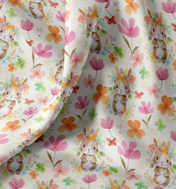 Dieser hochwertige Baumwollstoff Popeline mit liebevollem Kaninchen-Digitaldruck Das exklusive Dessin aus Frankreich wirkt ruhig, kindgerecht und detailverliebt zugleich.