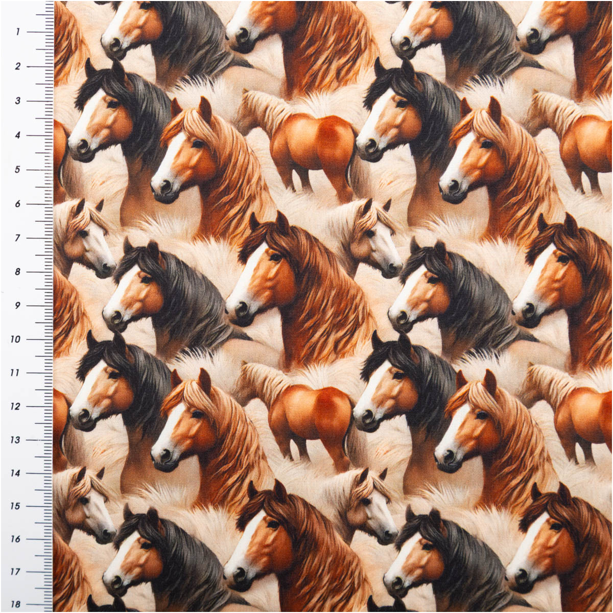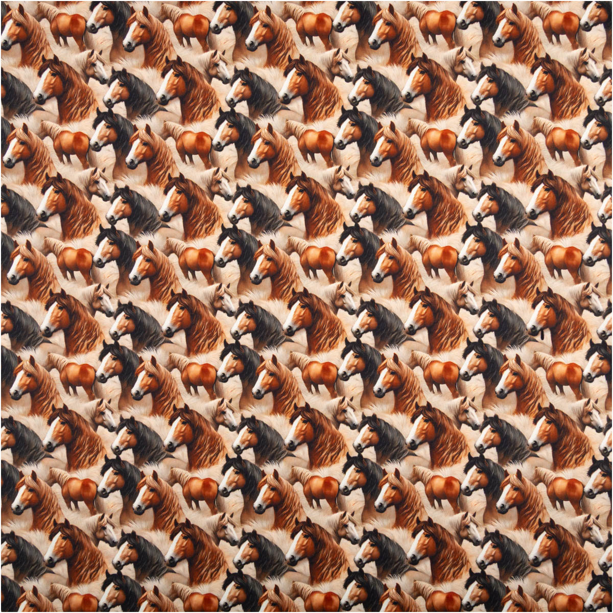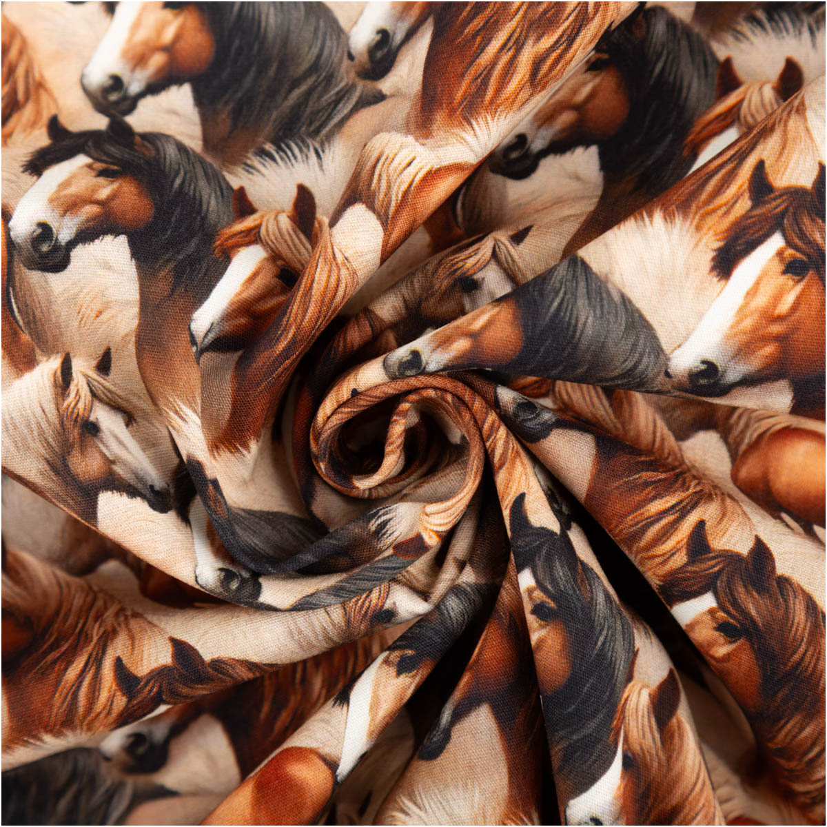 Baumwollstoff Popeline Digitaldruck Pferde braun 1,50m Breite