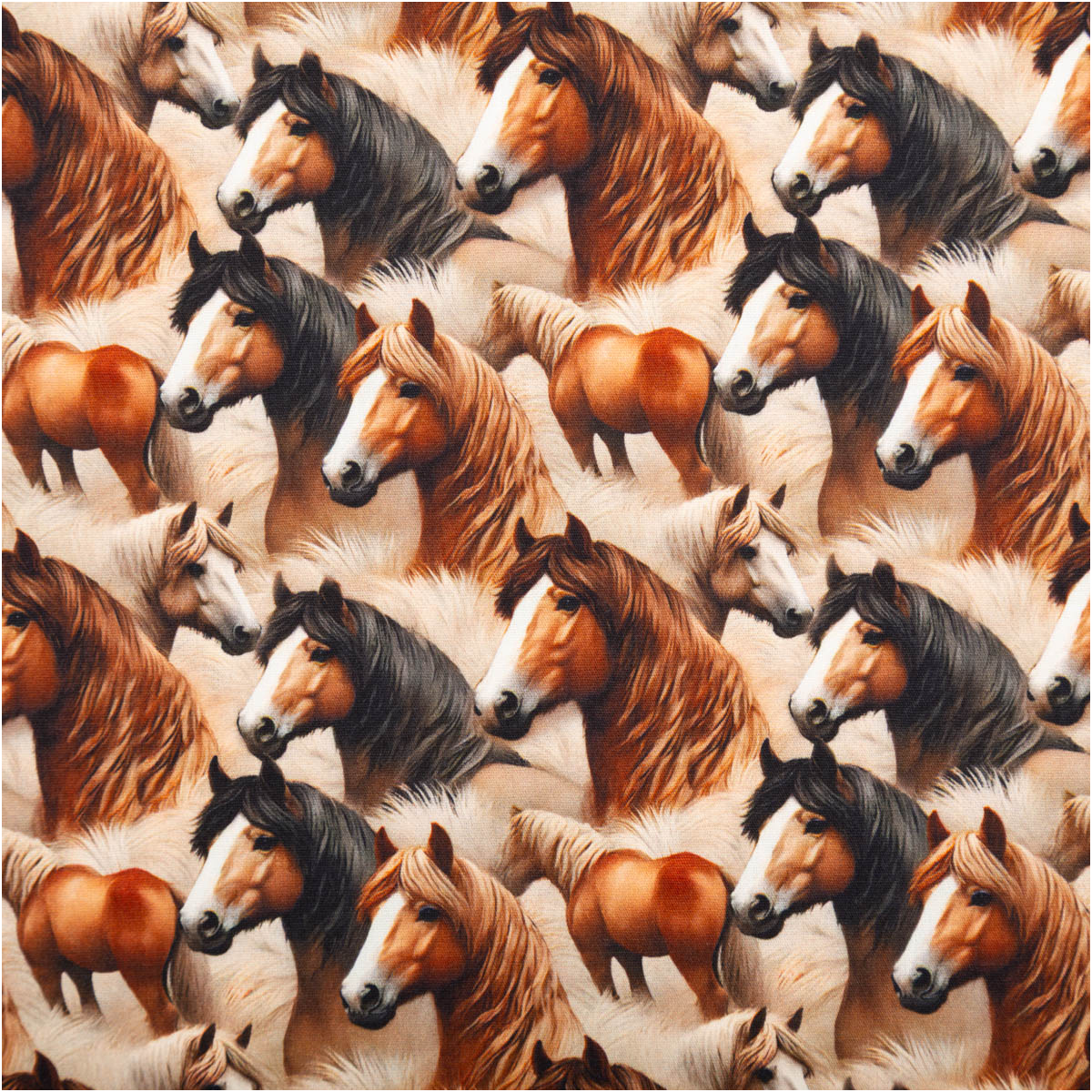 Baumwollstoff Popeline Pferde braun – Digitaldruck 150cm Breite