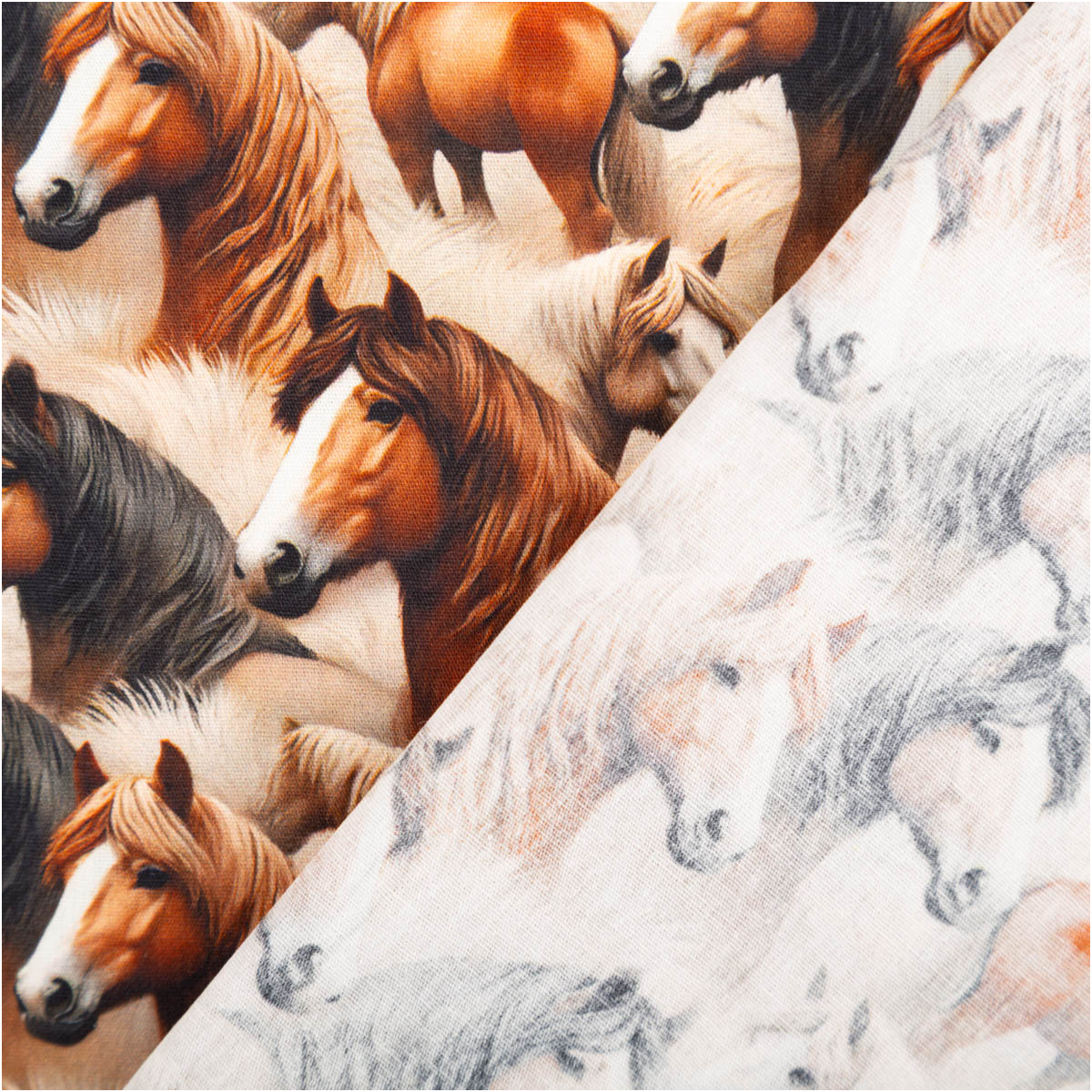 Zauberhafter Baumwollstoff Popeline mit Pferde-Digitaldruck