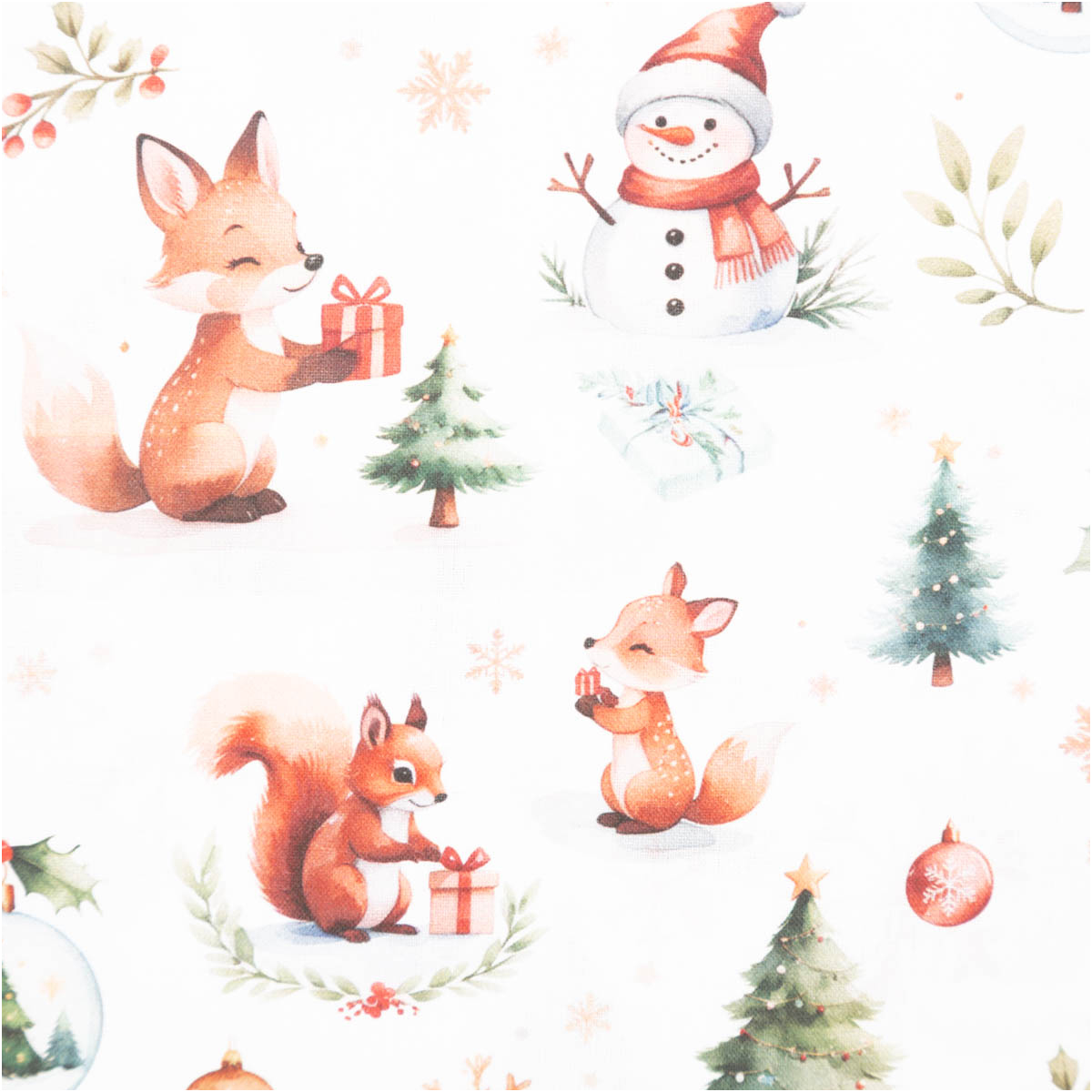 Baumwollstoff Popeline Digitaldruck Weihnachtsstoff Dounel Waldtierweihnacht weiß 1,47m Breite
