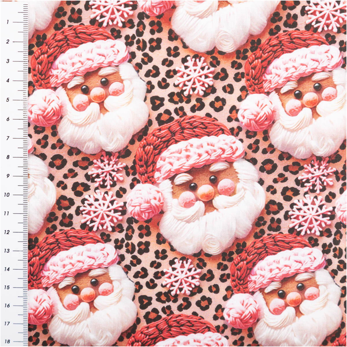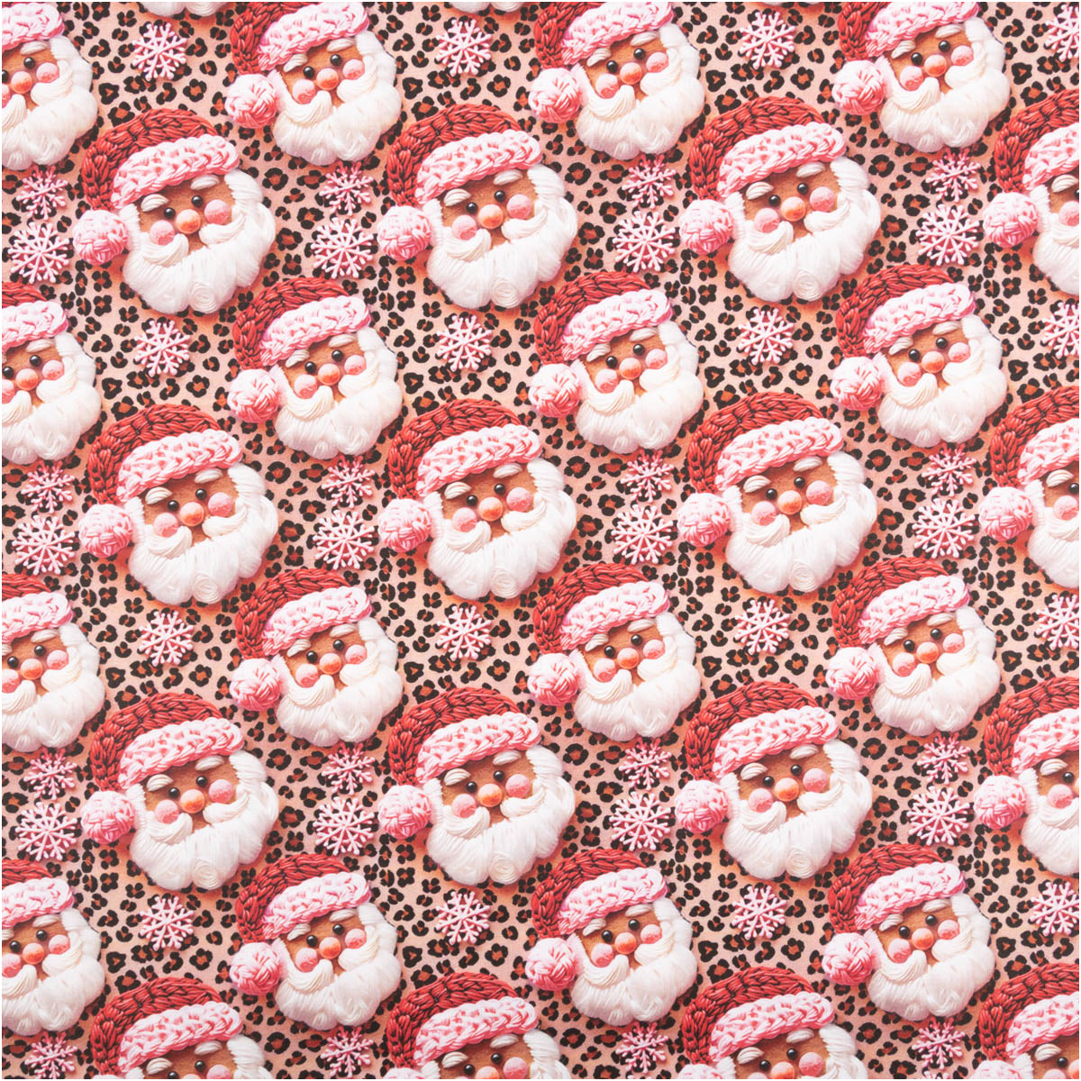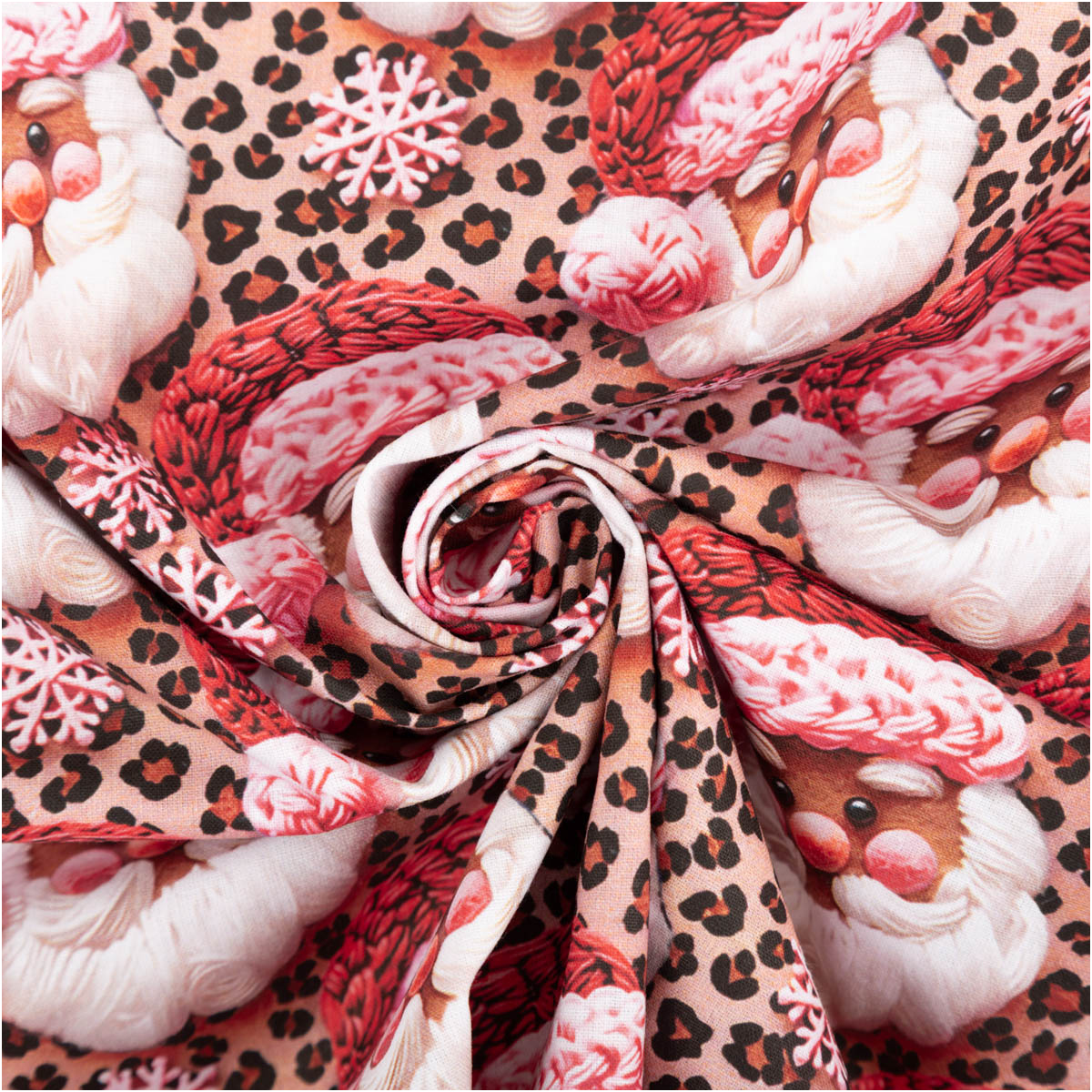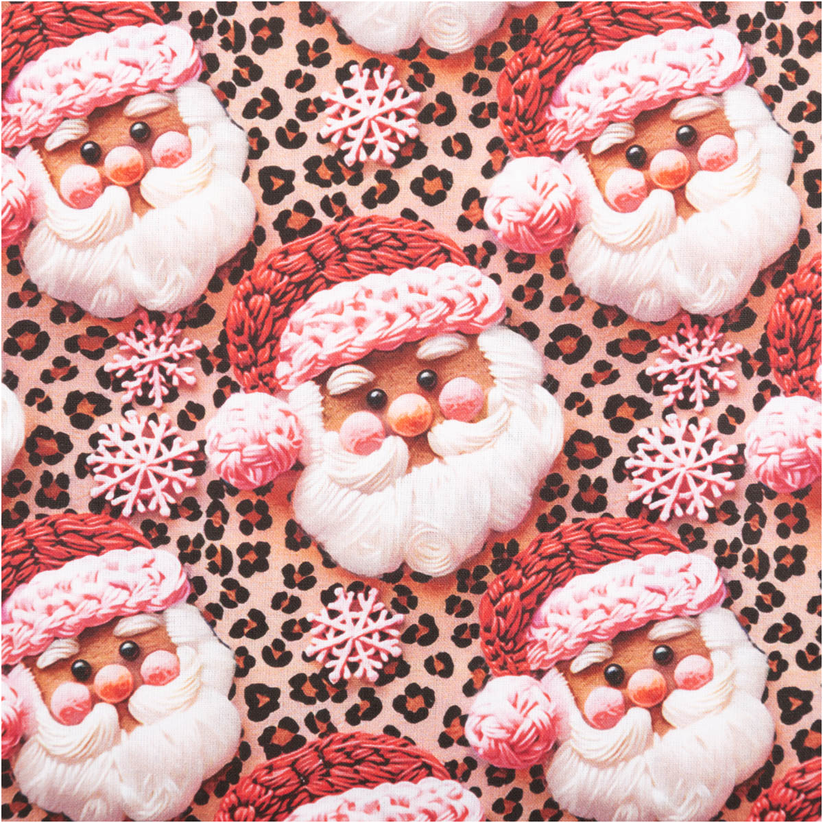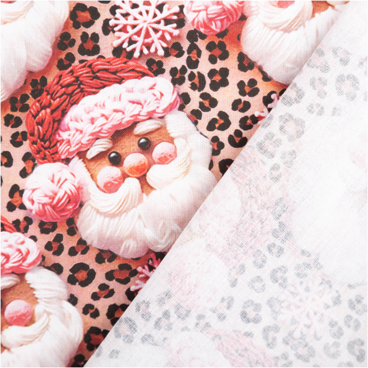 Dieser exklusive Baumwollstoff Popeline im Digitaldruck bringt festliche Weihnachtsstimmung in dein Zuhause. Das liebevoll gestaltete Dessin zeigt fröhliche Weihnachtsmänner in Beige und Rosa auf einem modernen Hintergrund mit Schneeflocken und Animal-Print-Optik – ein außergewöhnlicher Hingucker für kreative Weihnachtsprojekte.
