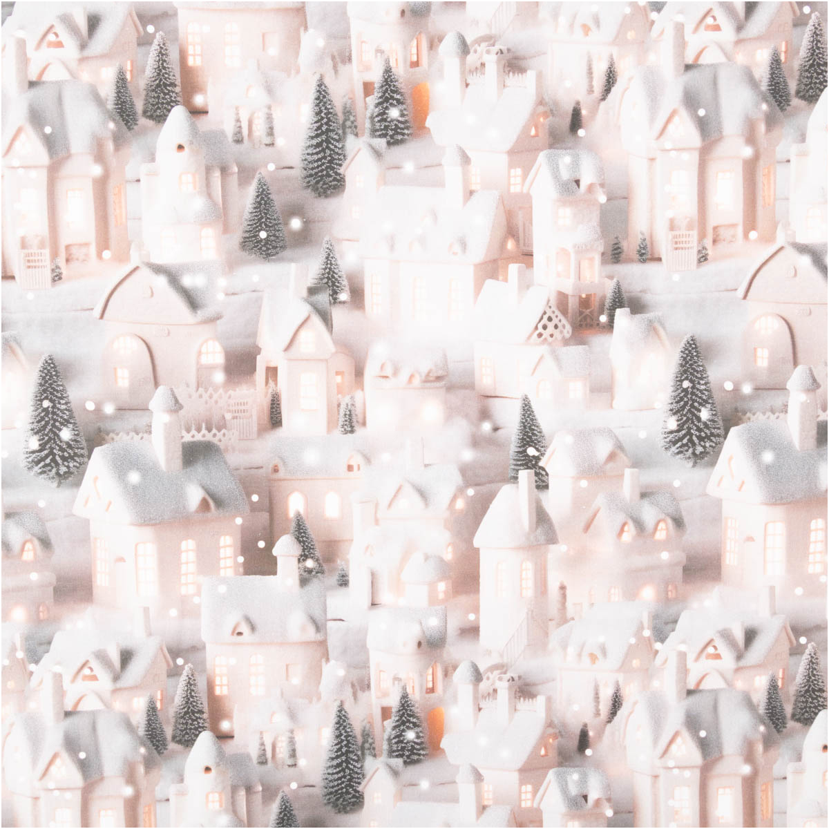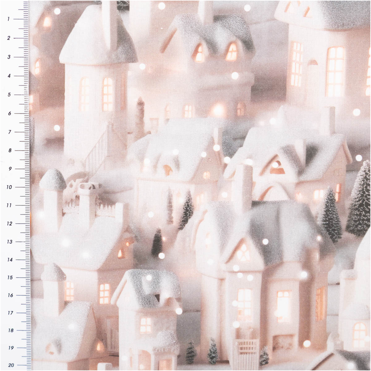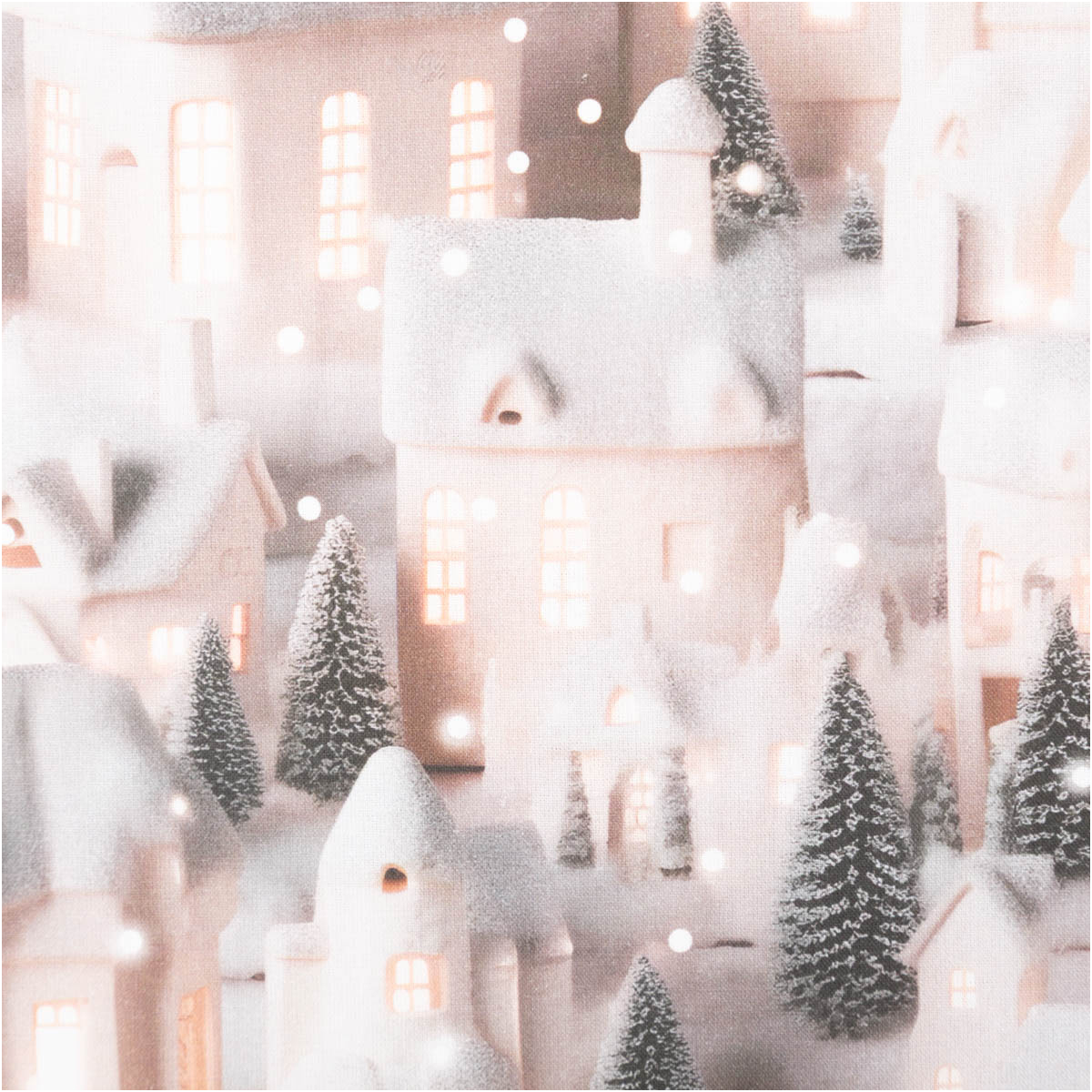 Detailreicher Digitaldruck: Winterliche Lichterhäuser in grau beige