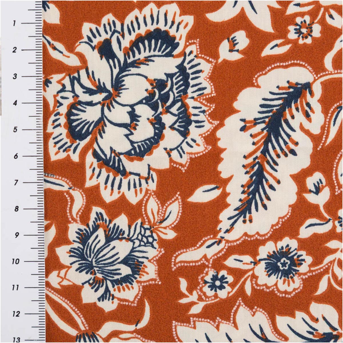 - Hochwertiger Baumwollstoff Popeline – Feine, glatte Qualität mit edlem Blumen-Print in Rost, perfekt für kreative Nähprojekte.