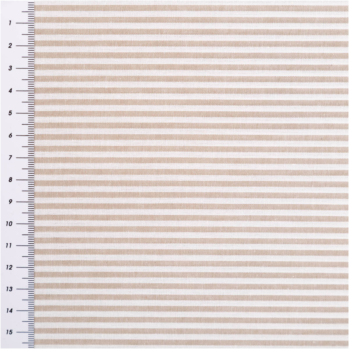 Die feinen Streifen in sand und weiß verleihen dem Stoff eine zeitlose und stilvolle Optik. Das Muster wirkt klassisch und klar, ohne aufdringlich zu sein. Dadurch passt der Stoff sowohl zu moderner Kleidung als auch zu geschmackvollen Wohntextilien und Accessoires.