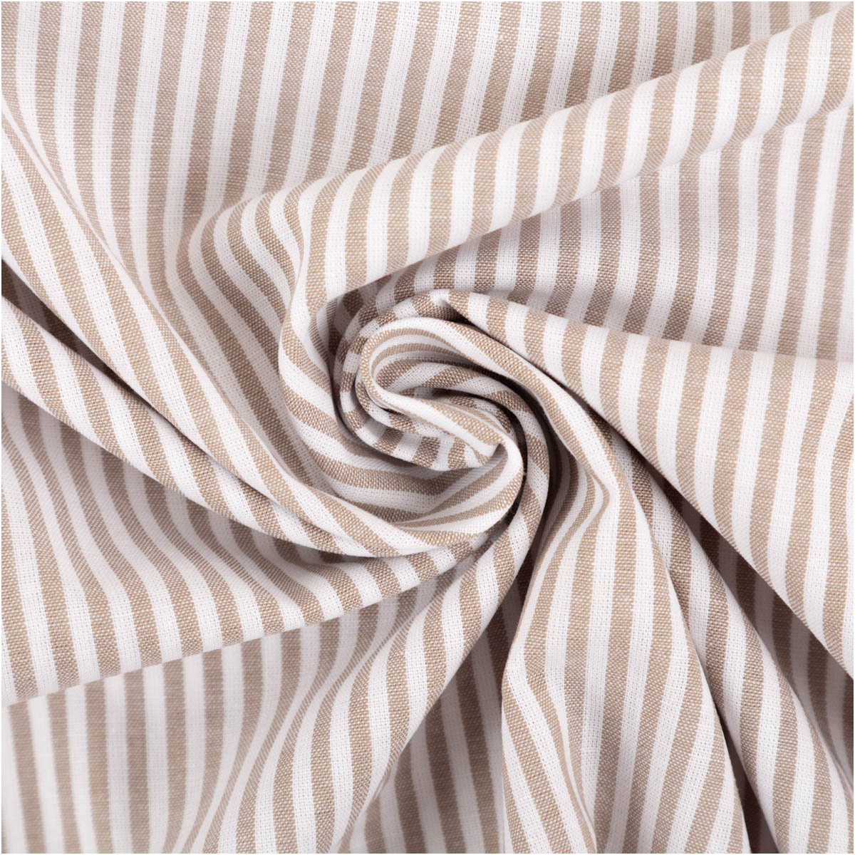 KLASSISCHES STREIFENDESSIN: Feine 3-mm-Streifen in sand und weiß wirken zeitlos, frisch und vielseitig kombinierbar für Bekleidung und Wohntextilien