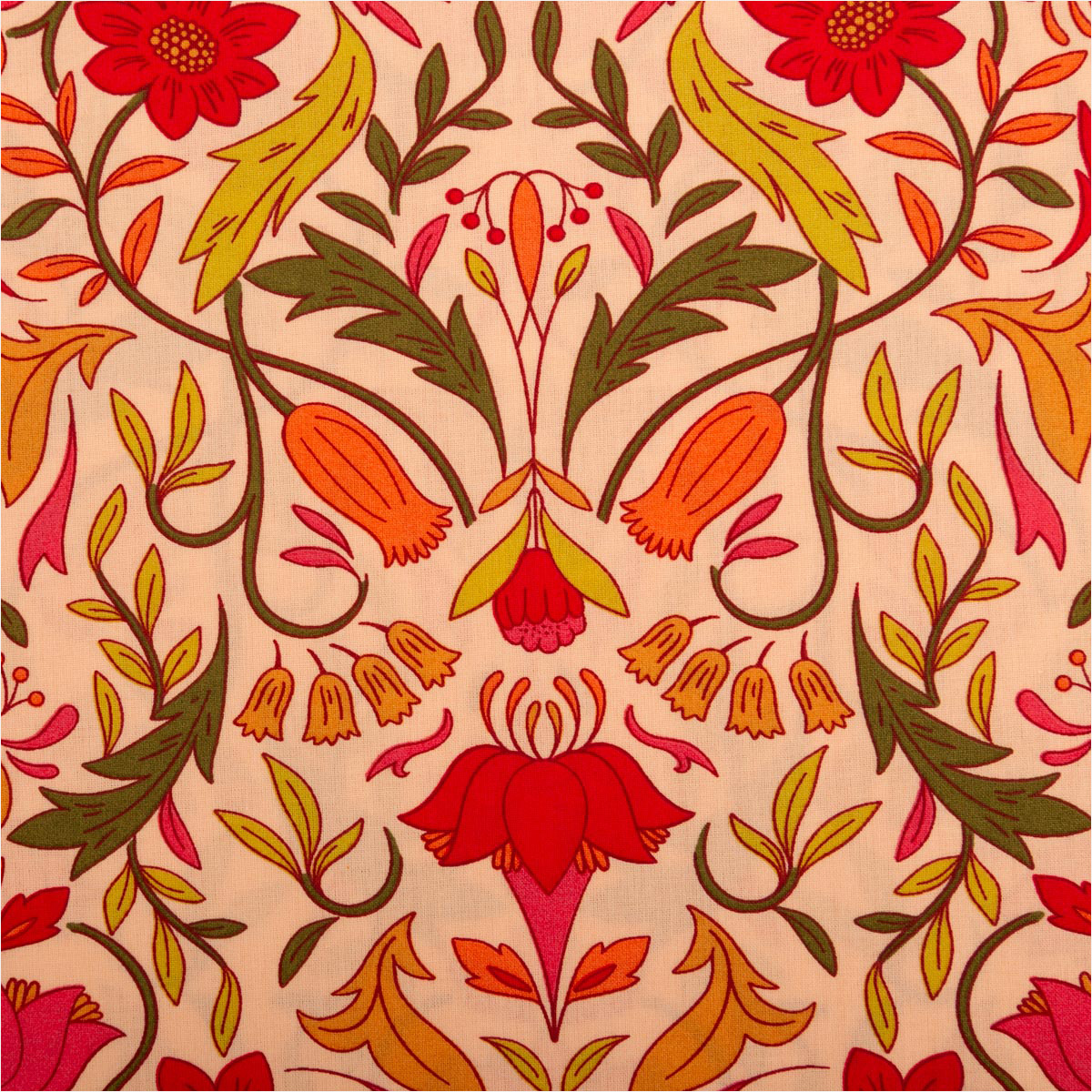 Baumwollstoff Alphonse Blumen Ornamente peach grün pink 1,47m Breite