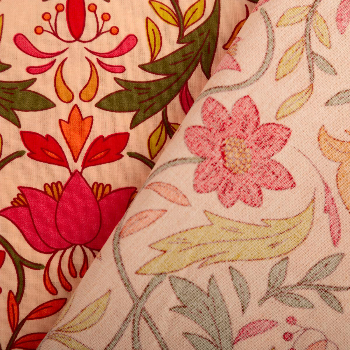 Baumwollstoff Alphonse Blumen Ornamente peach grün pink – französisches Design 1,47m Breite