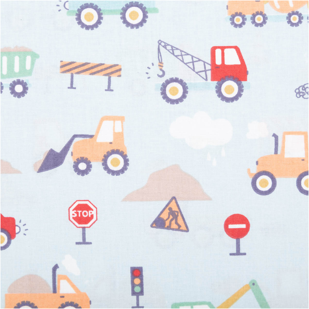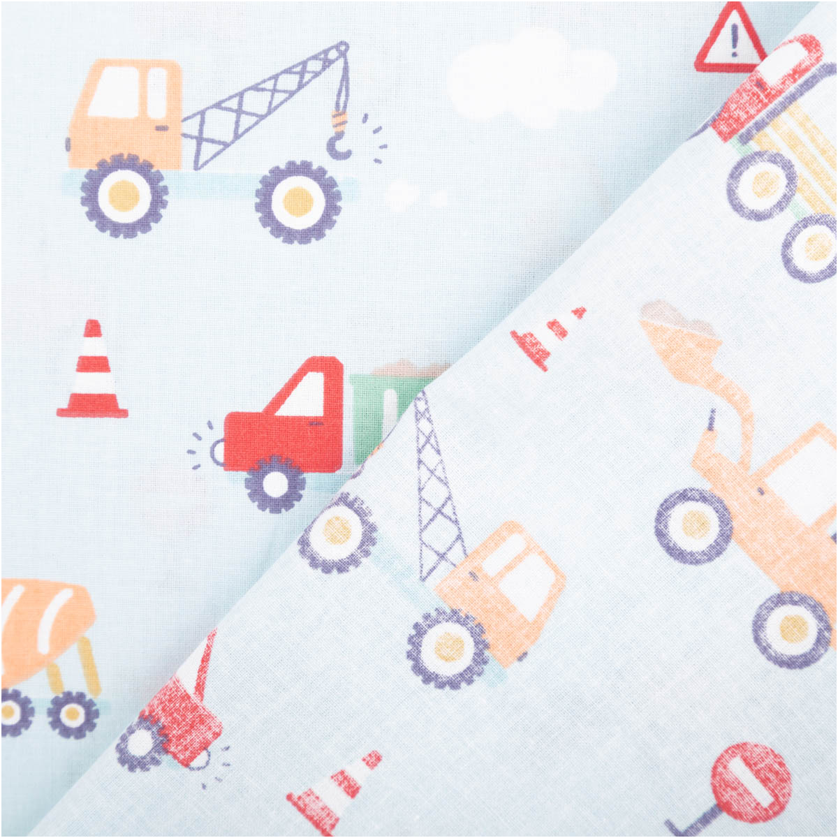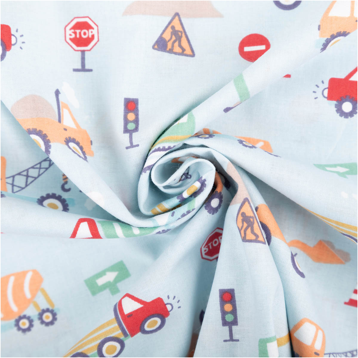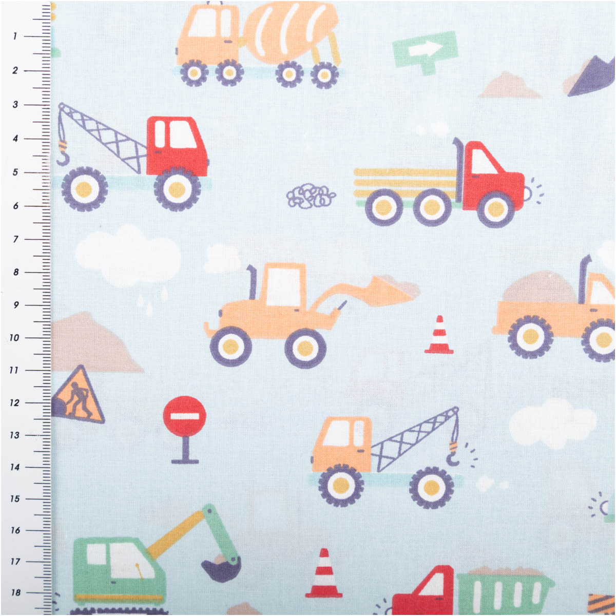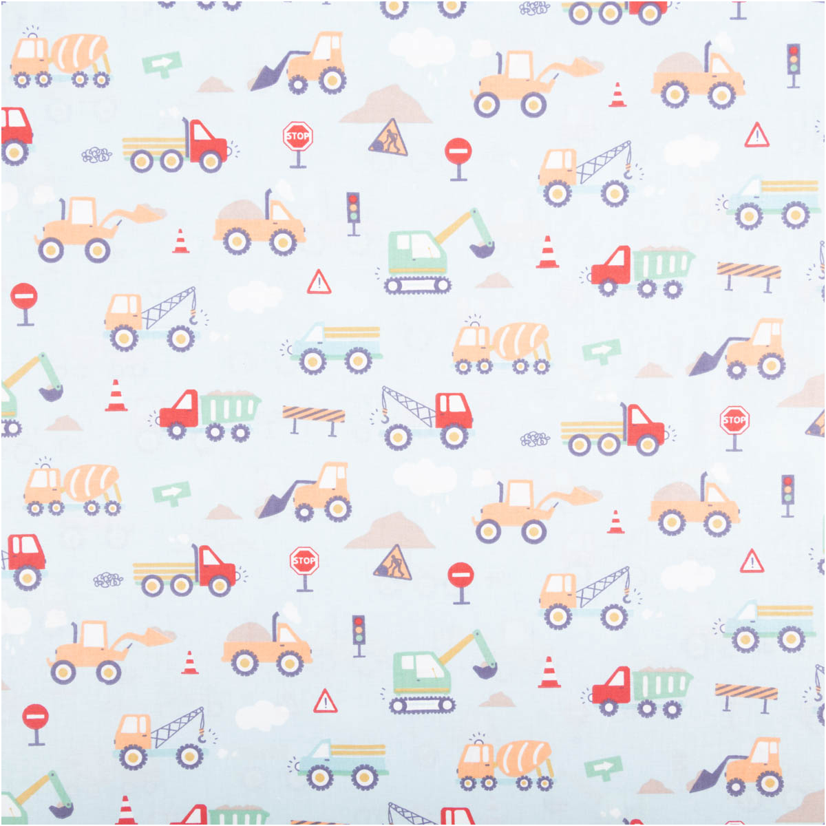 Baumwollstoff Camions Baufahrzeuge hellblau – 100% Baumwolle 1,47m Breite
