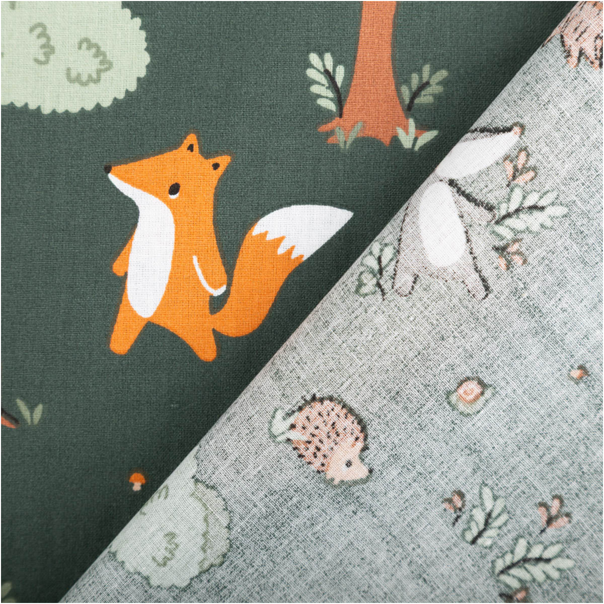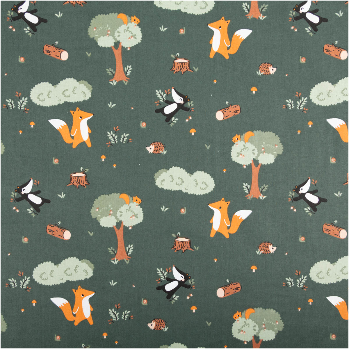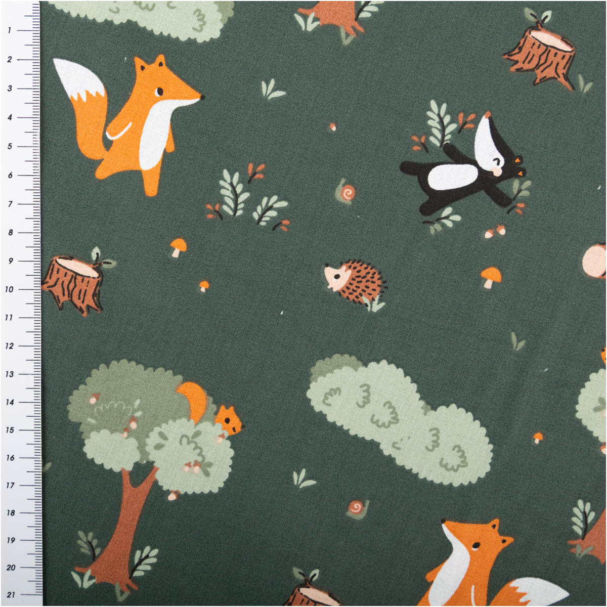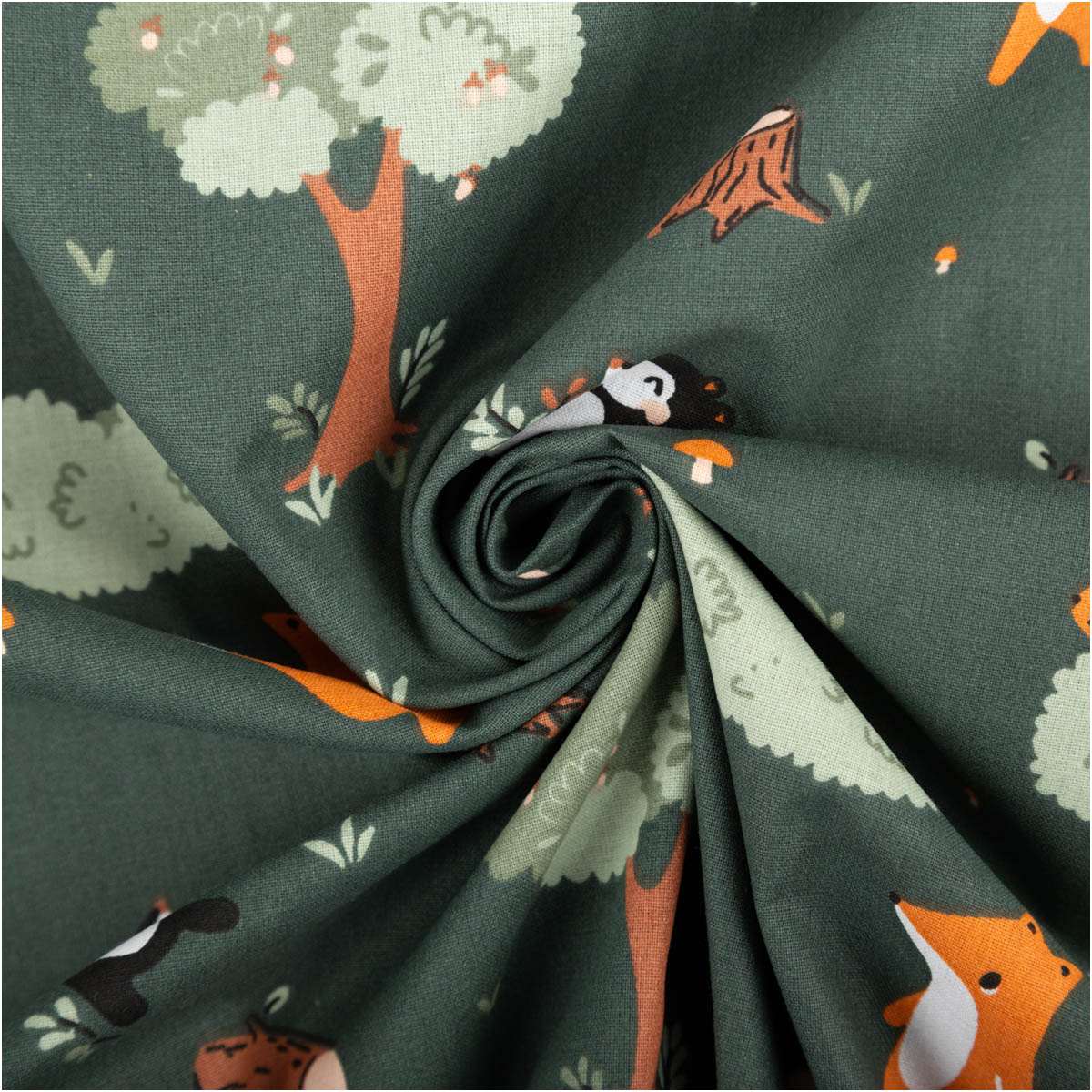 Baumwollstoff Guy Waldtiere Bäume grün – 100% Baumwolle 1,47m Breite