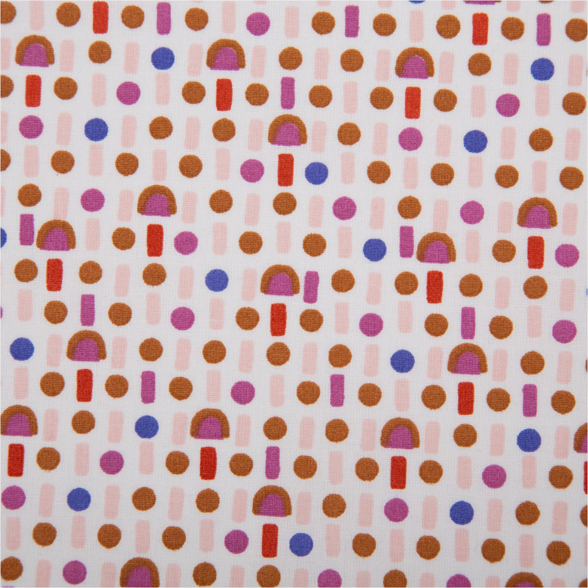 Baumwollstoff Miho Mini Formen – weiß, violett, kupfer – 1,47 m Breite