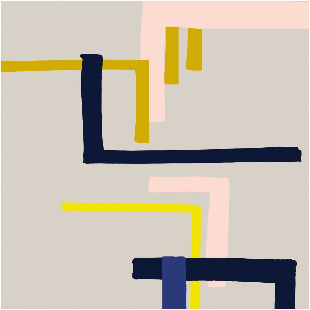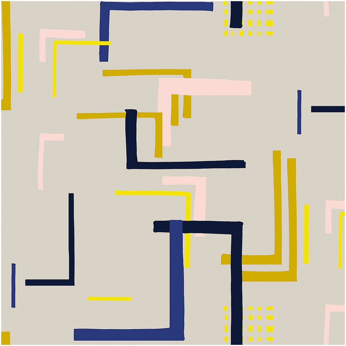 Motiv: grafisches Linienmuster in beige, blau, rosa und neongelb