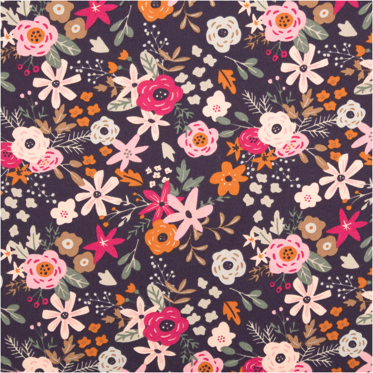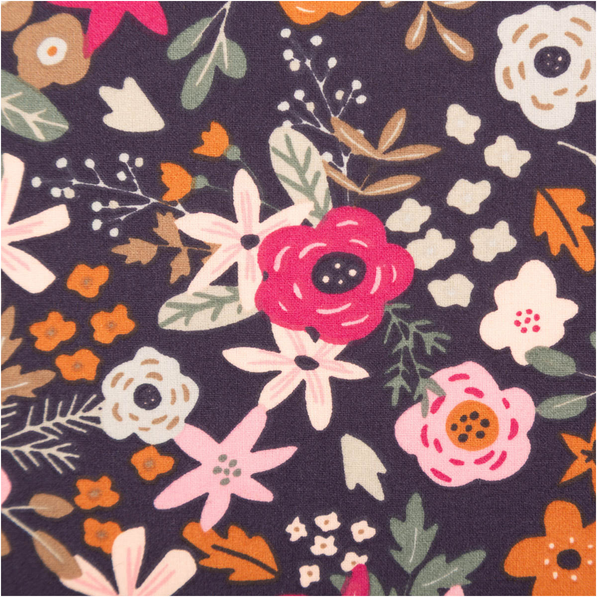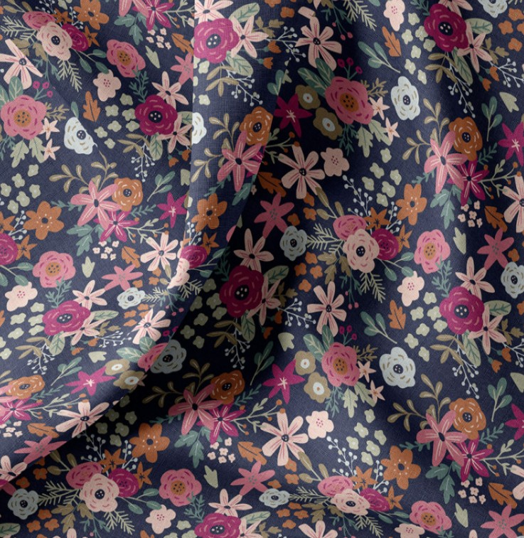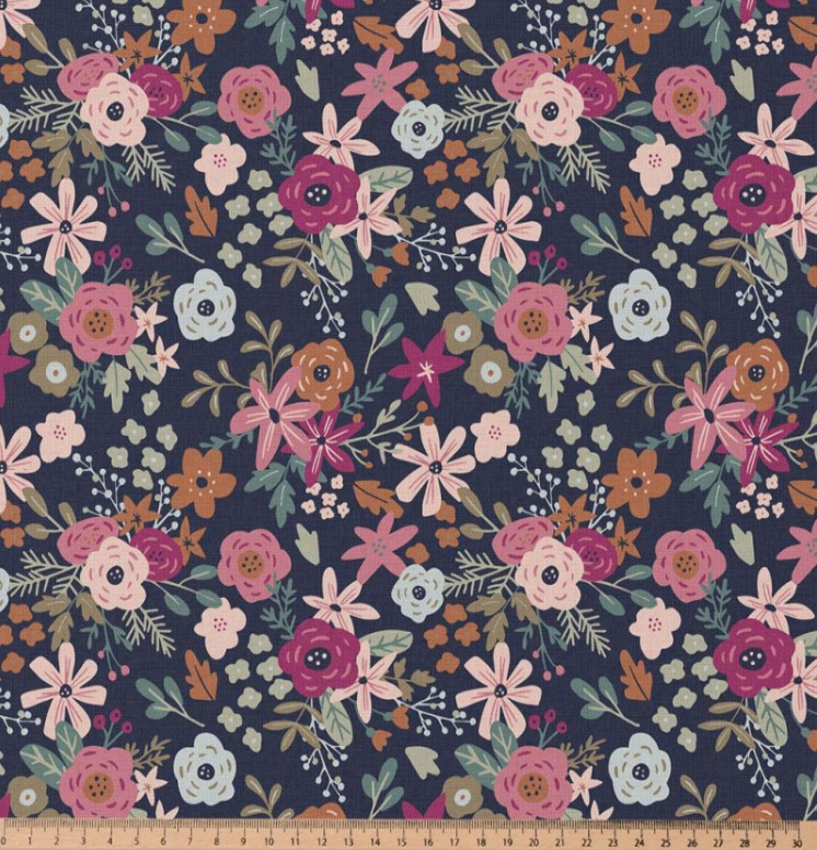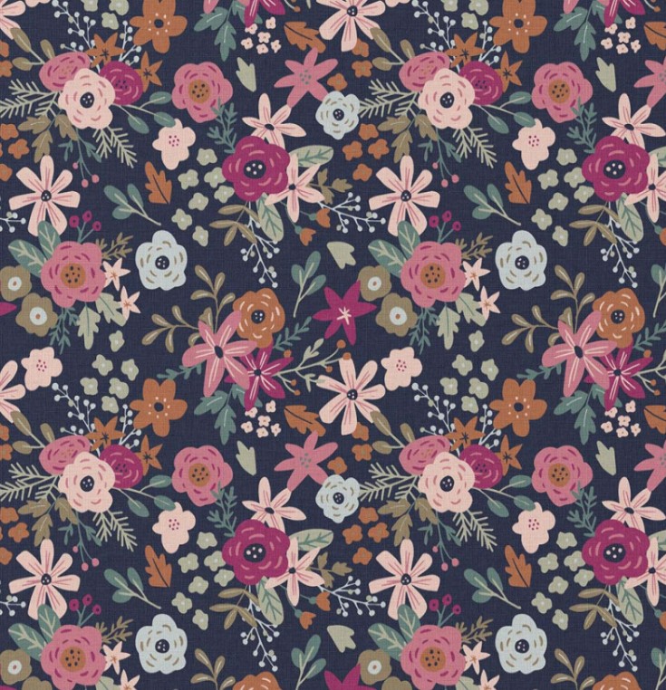 Baumwollstoff Olga Blumen dunkelblau/rosa – 1,47 m Breite
