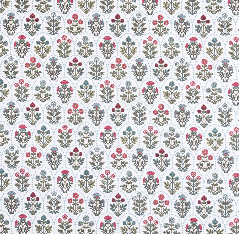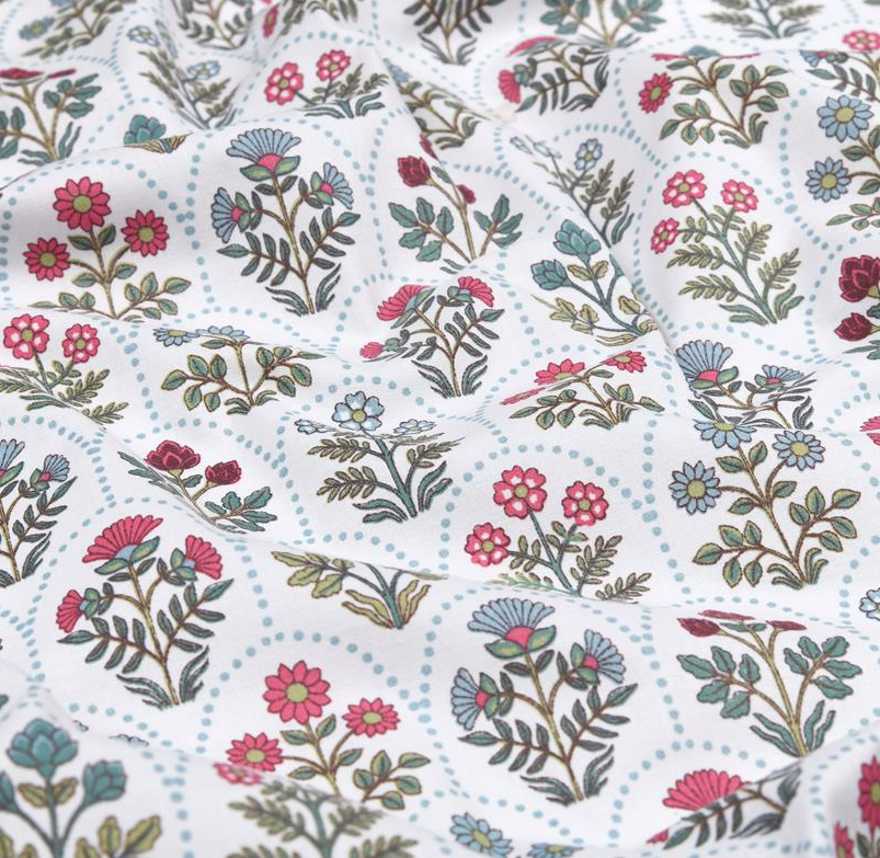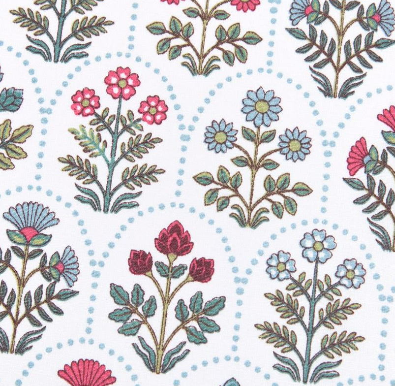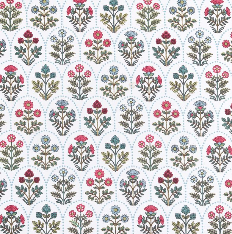 Dieser hochwertige Baumwollstoff Saphir begeistert mit einem detailreichen Blumen-Wellenmuster in Grün, Rot und Blau auf weißem Grund. Das exklusive französische Dessin verleiht dem Stoff eine freundliche, harmonische Ausstrahlung und macht ihn zu einer idealen Wahl für kreative Nähprojekte rund um Kinder, Babys, Wohnen und leichte Kleidung.