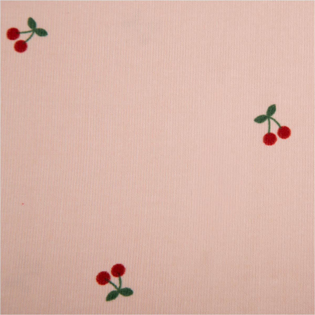 Cord Stoff Feincord 21W Baumwolle mit Kirschen rosa rot 1,45m Breite