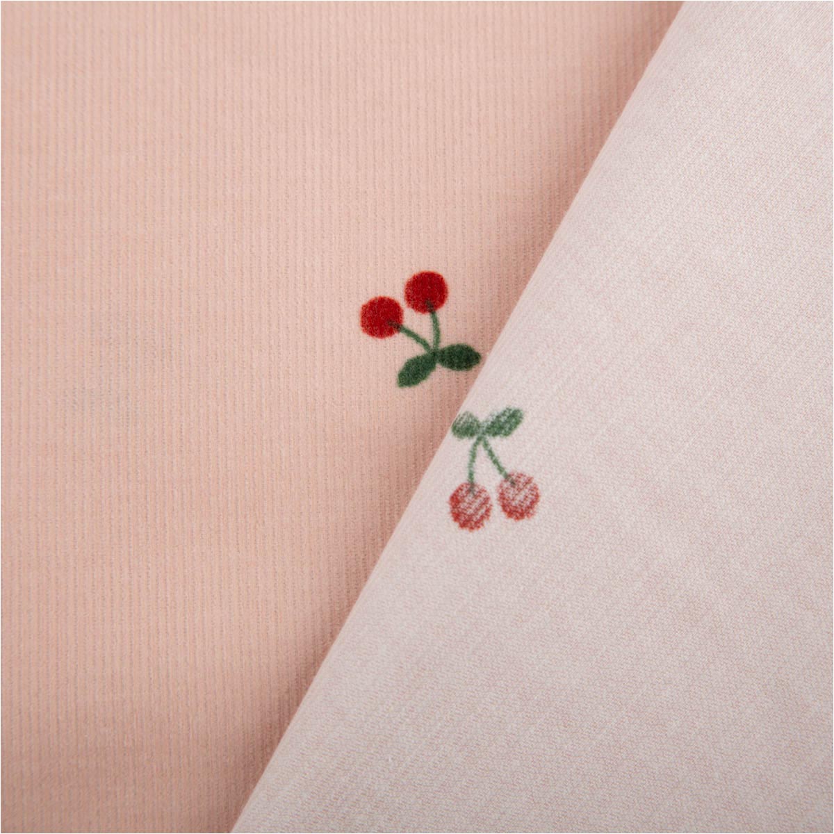 Dieser Feincord aus 100 % Baumwolle überzeugt mit seiner weichen, samtigen Oberfläche und dem charmanten Kirsch-Motiv auf rosafarbenem Grund. Durch seine feine Struktur ist der Stoff angenehm atmungsaktiv, strapazierfähig und langlebig – ideal für viele kreative Projekte rund ums Nähen, Dekorieren und Gestalten.