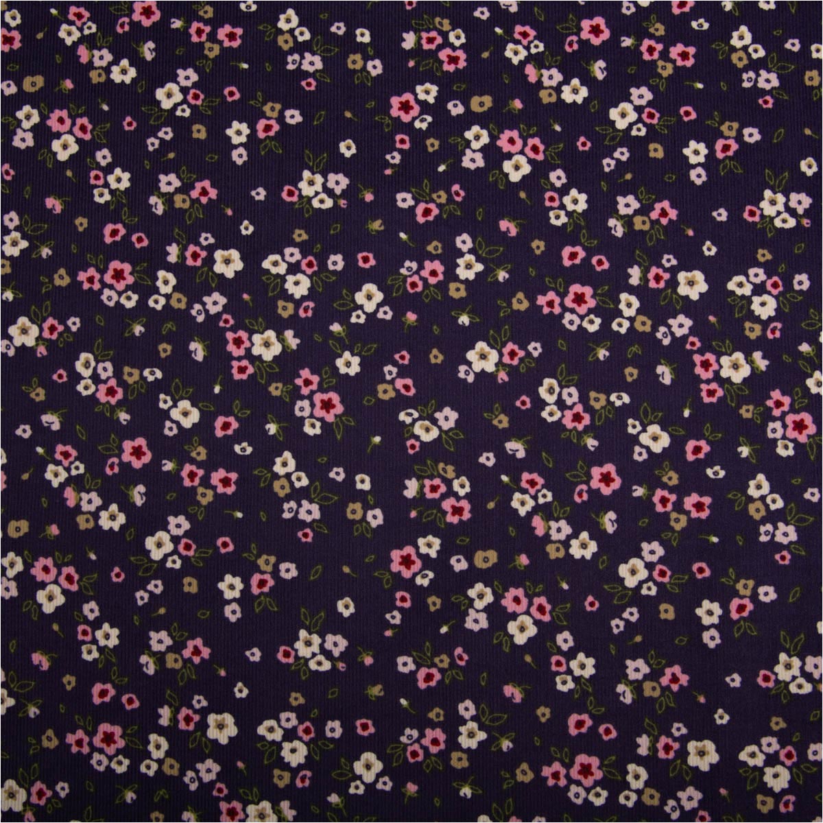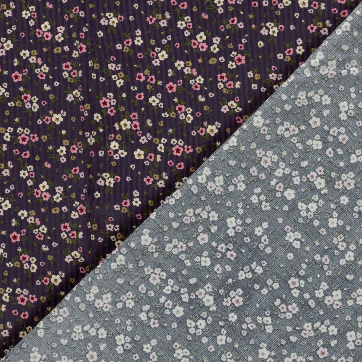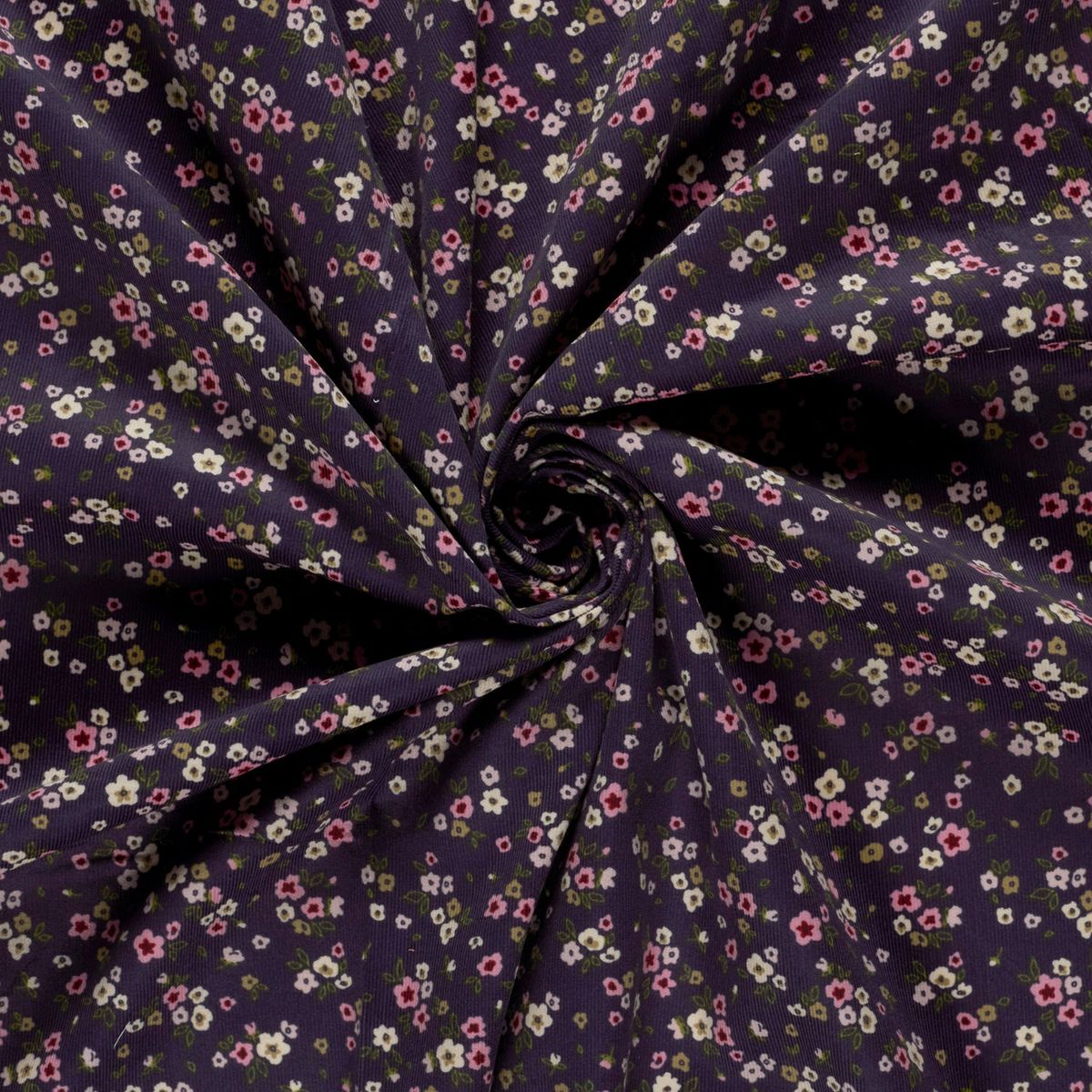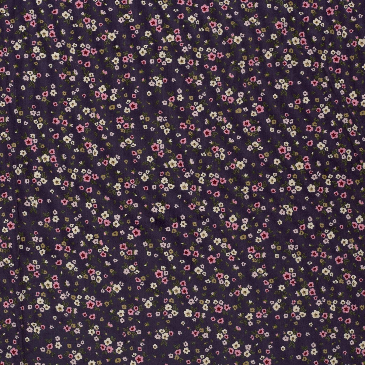 Feincord Baumwolle mit Streublümchen aubergine – weich, pflegeleicht, vielseitig