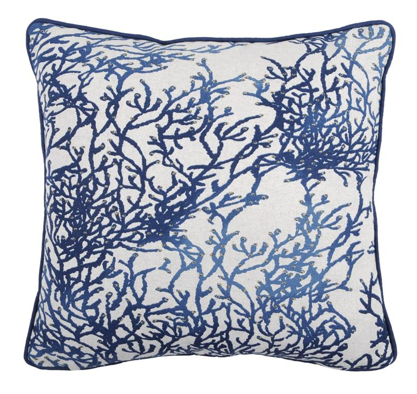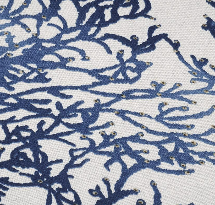 Baumwollstoff Dekostoff mit Korallenmotiv in Natur & Blau – polsterfähig