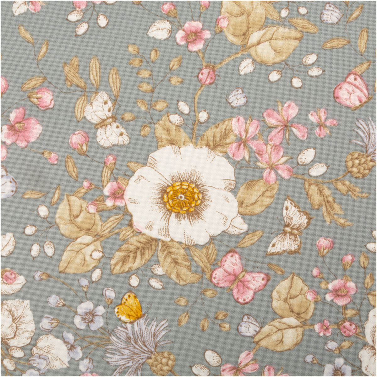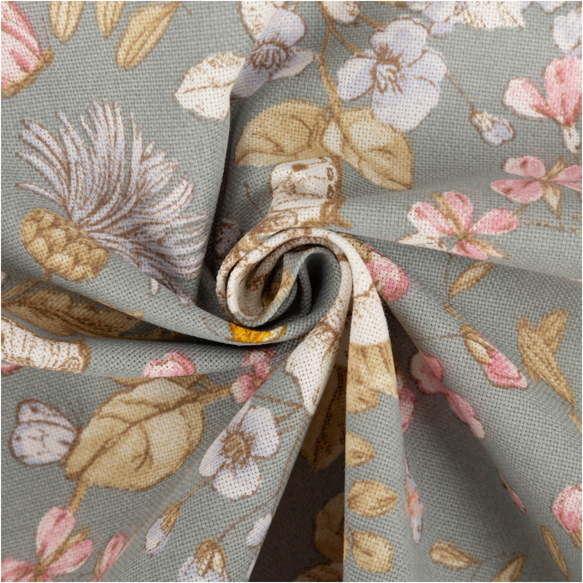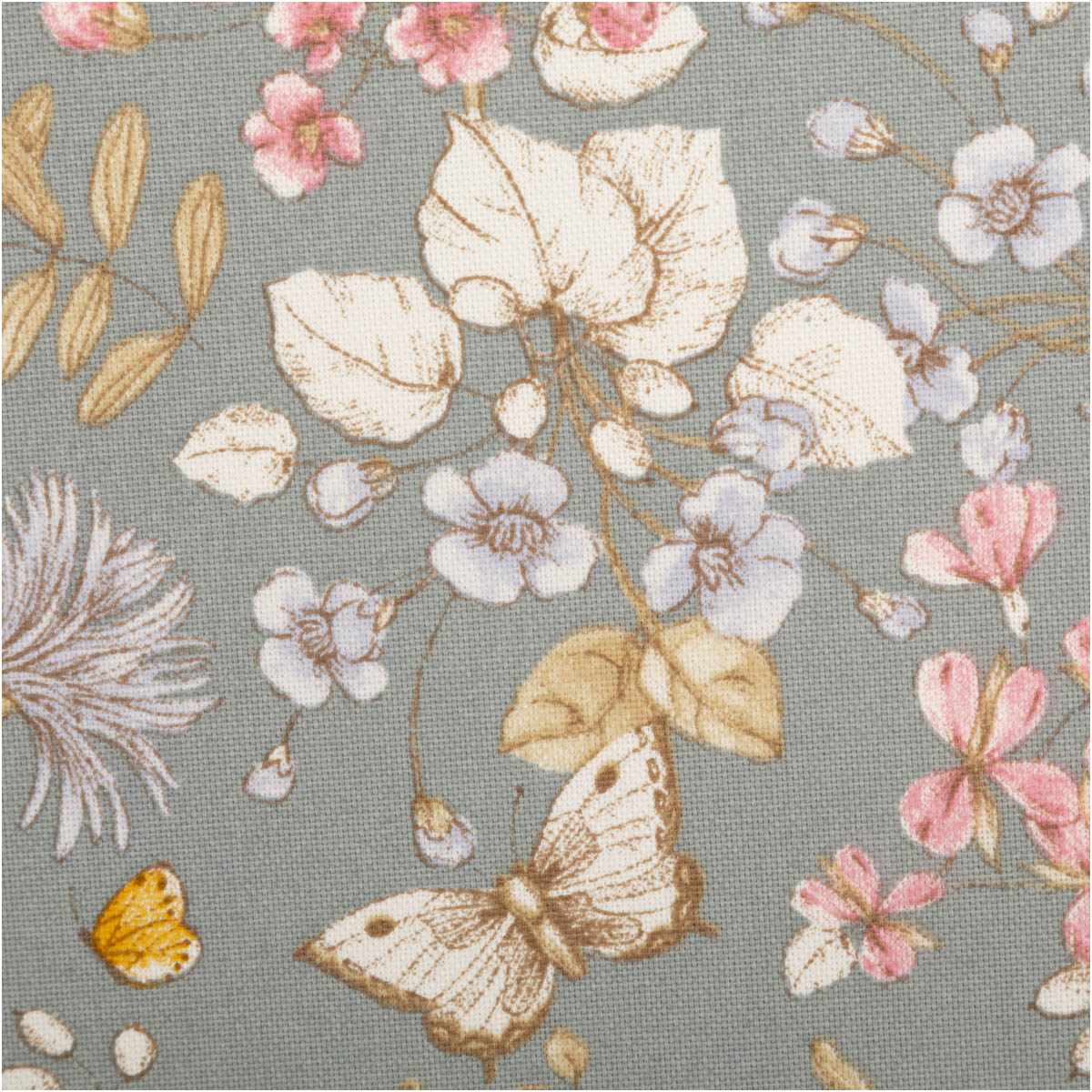 Hochwertiger Halbpanama-Dekostoff mit Blumen- und Schmetterlingsmotiv