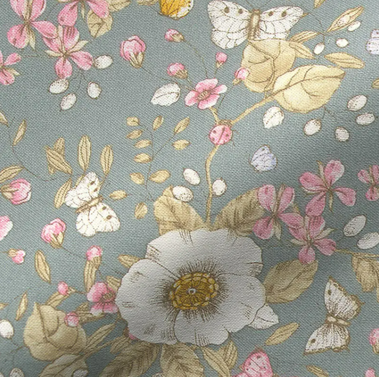 Dieser hochwertige Dekostoff mit romantischem Blumen- und Schmetterlingsmotiv bringt Leichtigkeit und natürliche Frische in dein Zuhause. Das harmonische Farbspiel aus Mintgrün, Rosa und Weiß wirkt ruhig und zugleich verspielt – ideal für zeitlose Wohnideen und kreative Projekte. Durch die bewährte Halbpanama-Qualität ist der Stoff strapazierfähig, blickdicht und langlebig.