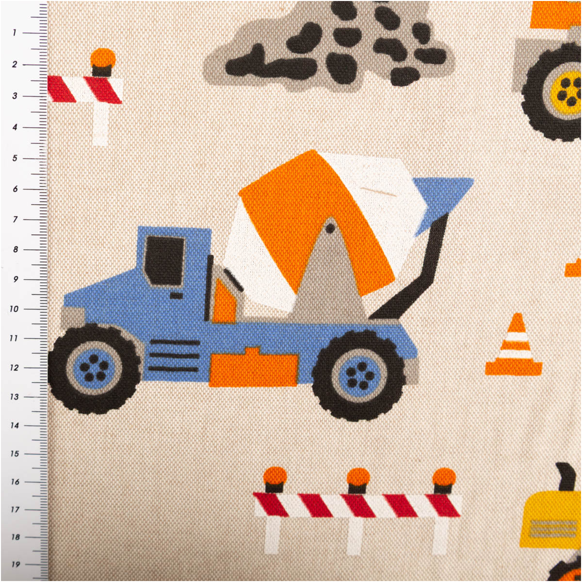 Dekostoff Baustelle Leinenlook als Meterware in Natur und Bunt