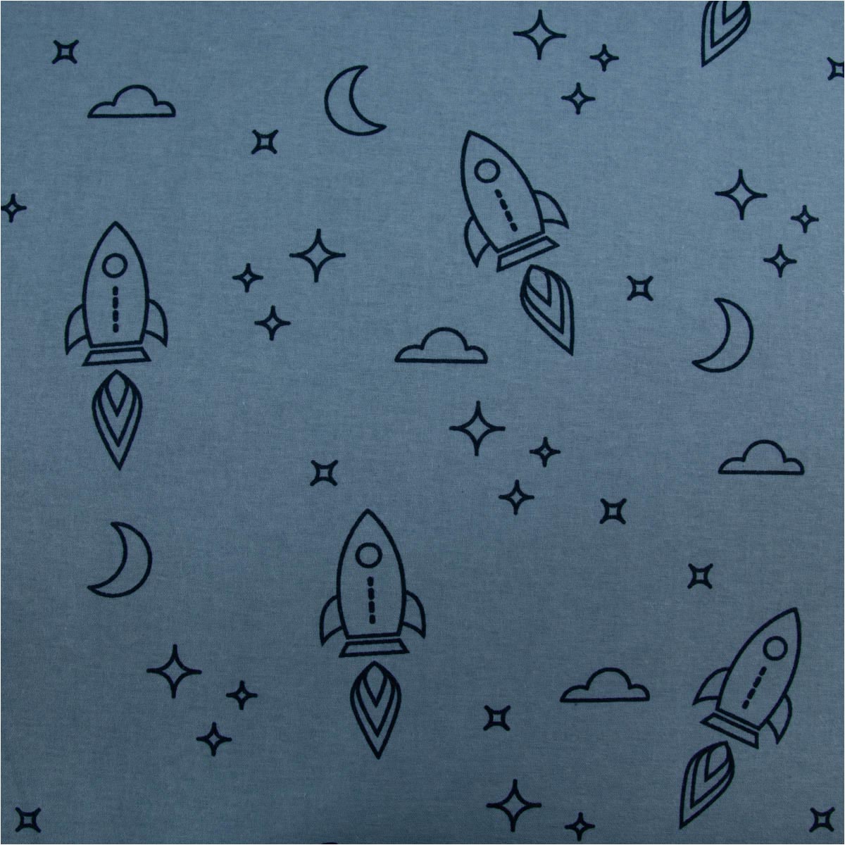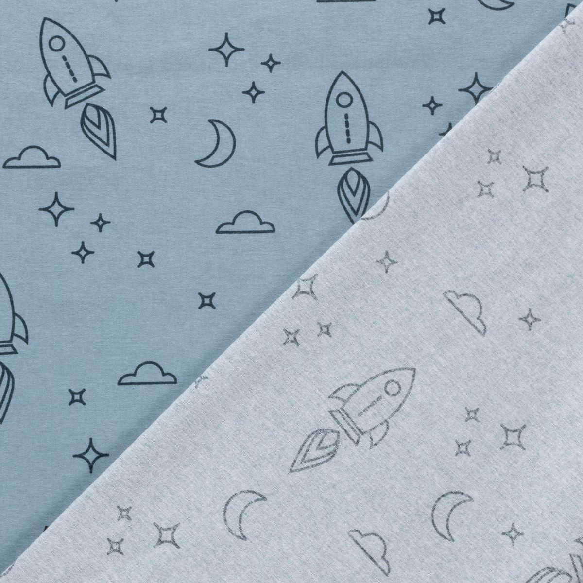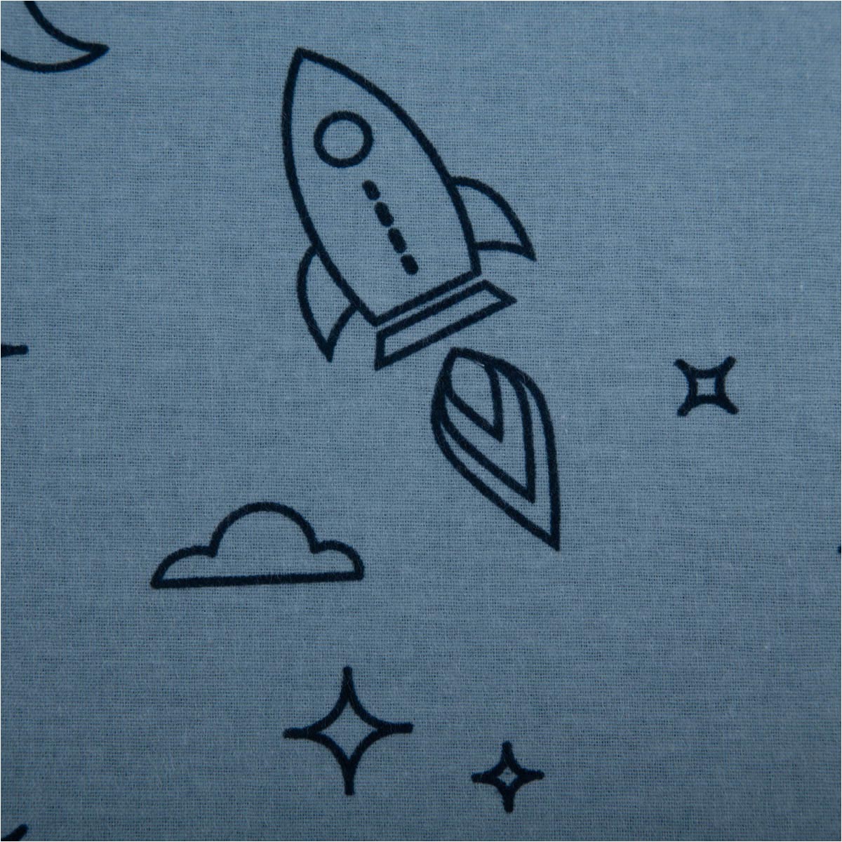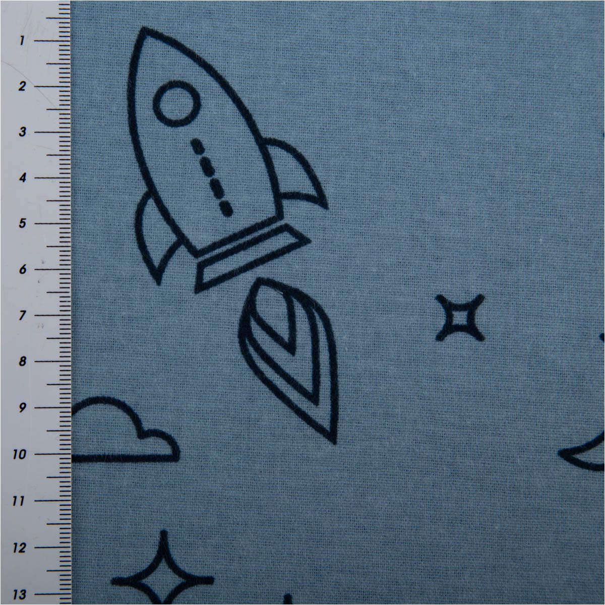 Flanell Stoff Baumwollflanell Raketen hellblau 1,47m Breite