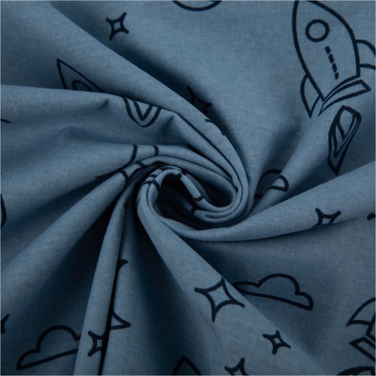 Flanellstoff aus 100% Baumwolle – Raketen hellblau, 1,47 m Breite, 165 g/qm