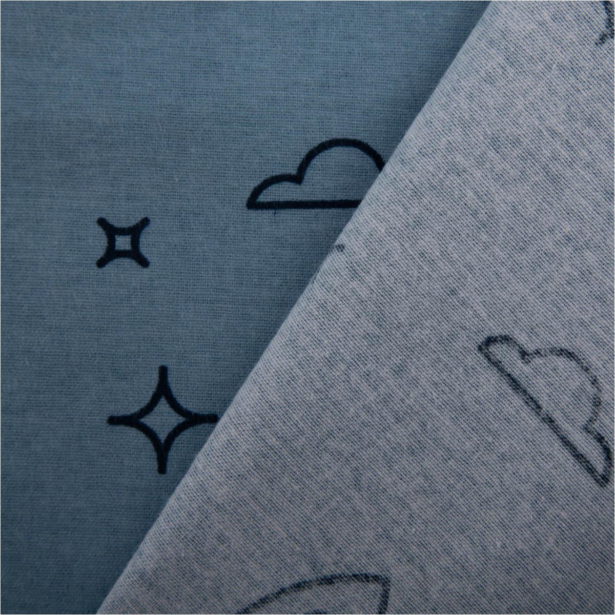 Du liebst gemütliche Stoffe mit Fantasie? Dieser Baumwollflanell in Hellblau mit Raketen, Monden, Sternen und Wolken fühlt sich dank angerauter Oberfläche extra soft an. Der feine Flaumflor speichert Luft, wirkt leicht isolierend und hält angenehm warm – ideal für Tag und Nacht.
