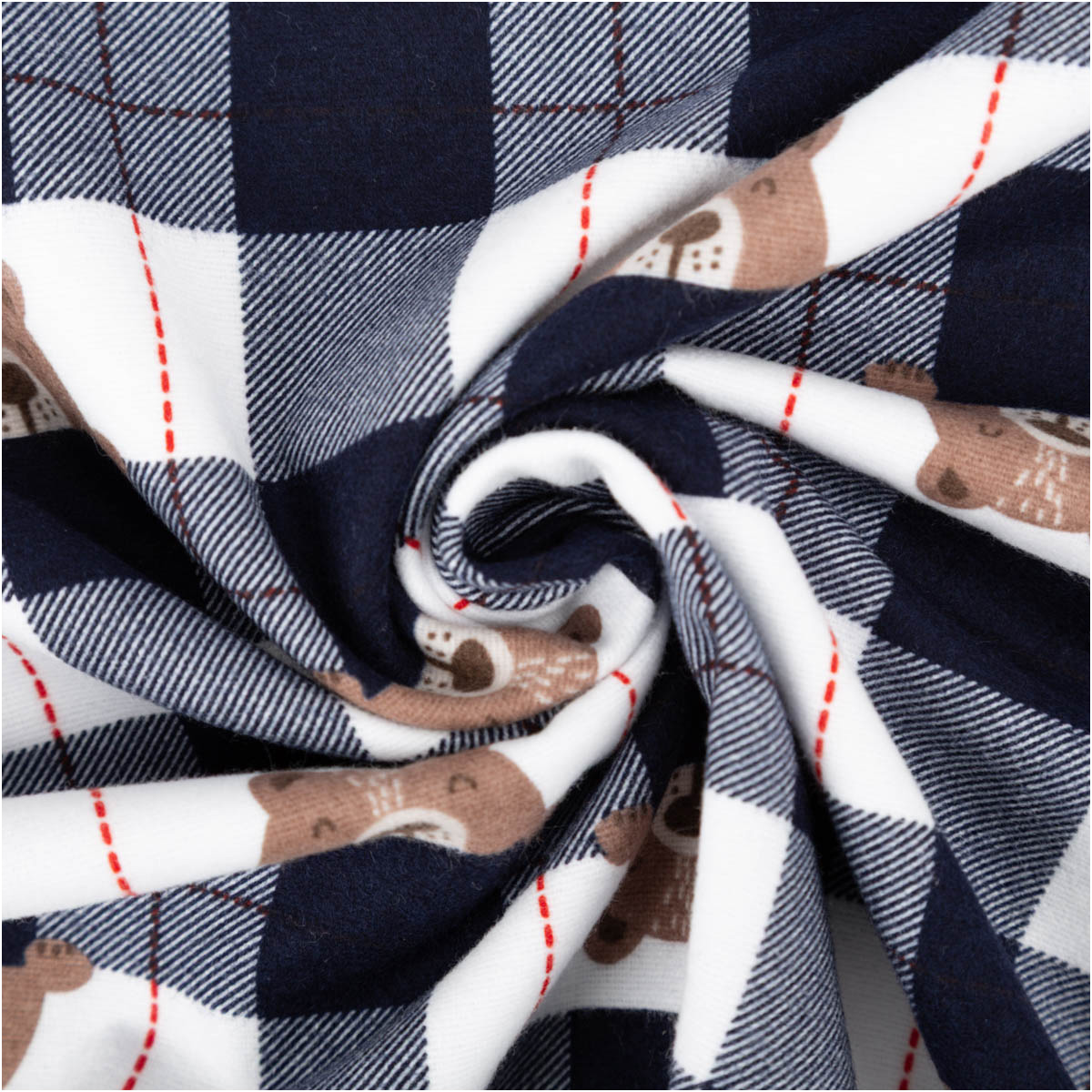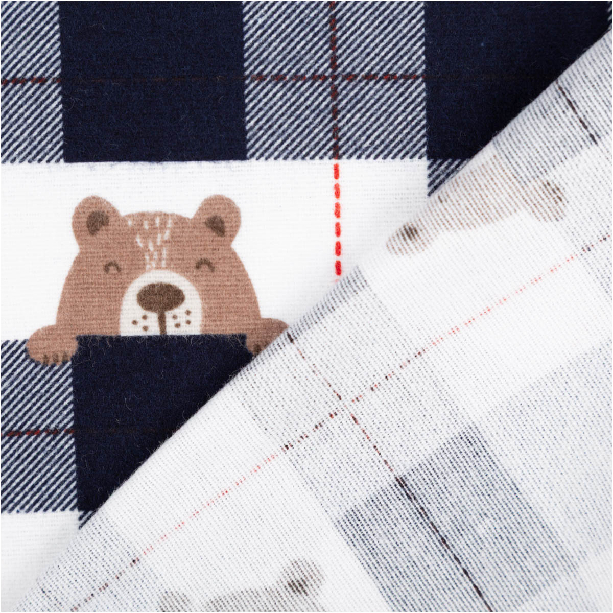 du liebst es gemütlich? Dieser Baumwoll-Flanell mit süßen Bärchen im Karo-Design ist weich gebürstet, hautfreundlich und perfekt für Kleidung und Heimtextilien.