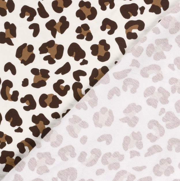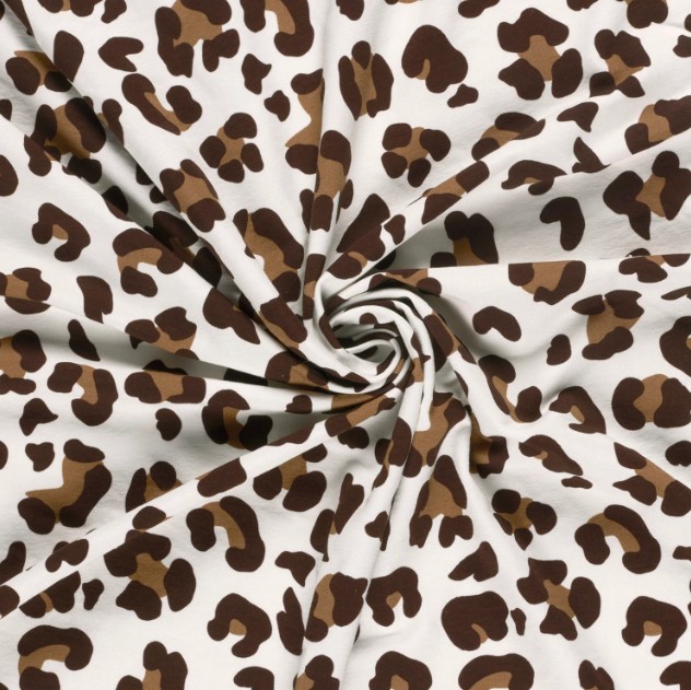 Du liebst Animalprints? Dieser French Terry mit Leo-Digitaldruck in wollweiß vereint trendigen Look mit superbequemem Tragegefühl. 1,50 m breit, 250 g/qm – perfekt für Hoodies, Shirts, Kleider und coole Kids-Outfits.