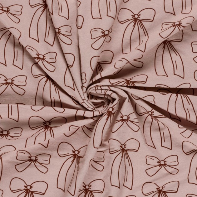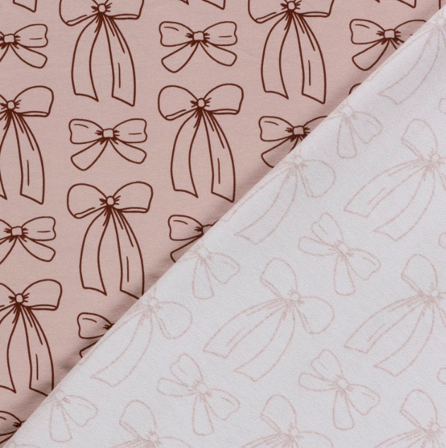 French Terry Stoff Schleifen rosa – 1,50 m Breite, elastisch & weich