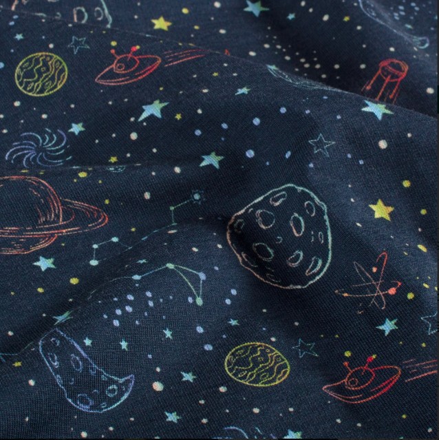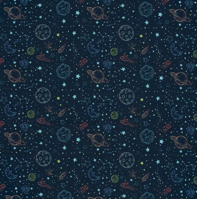 Design: Weltall-Print mit Planeten, Sternbildern, Monden, Kometen & Ufos