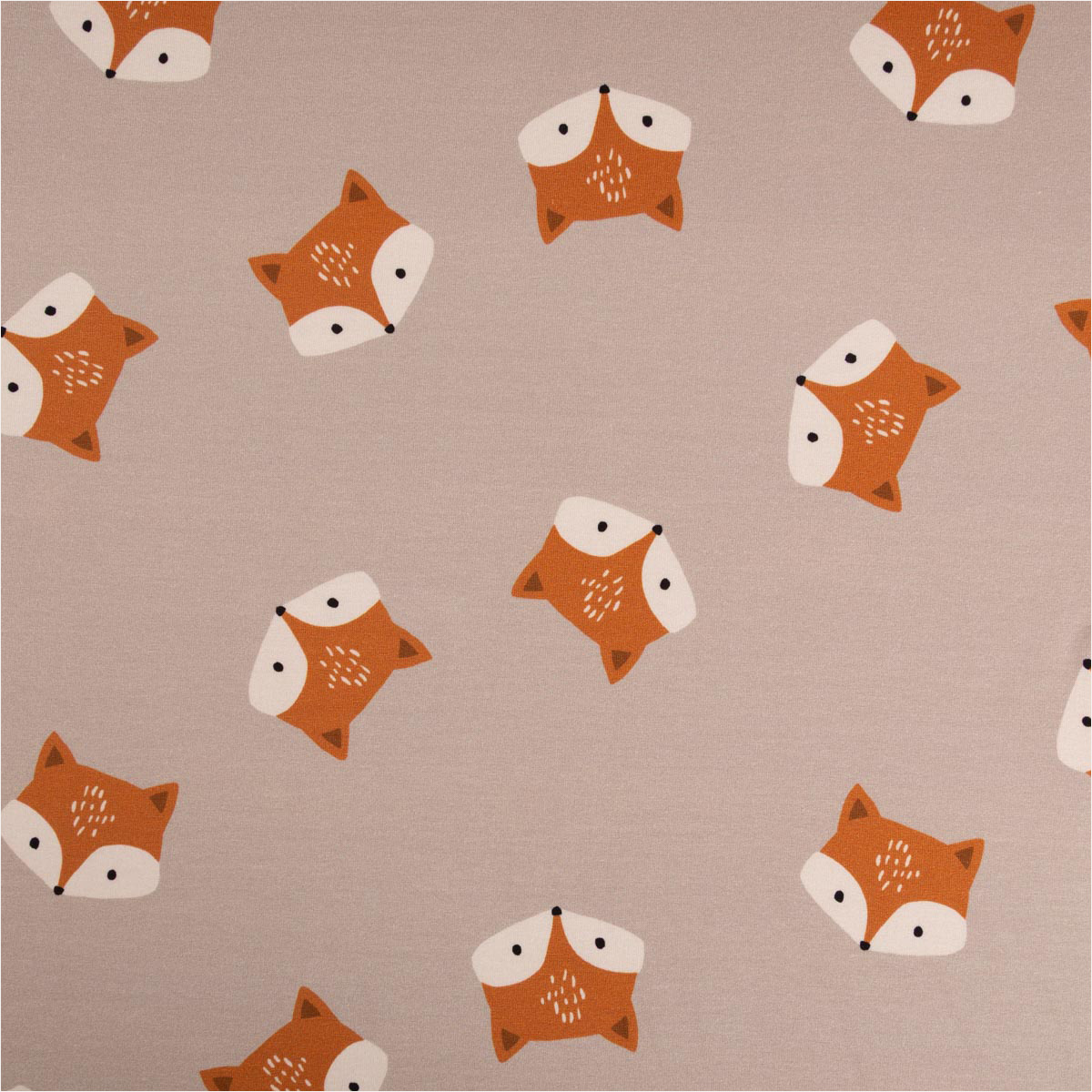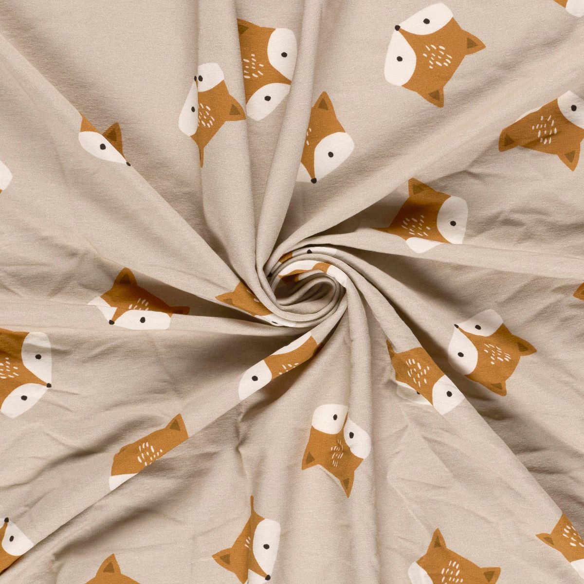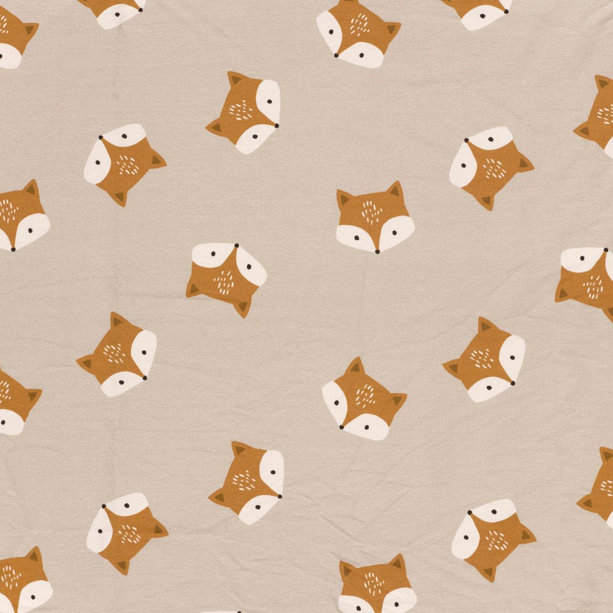 French Terry Stoff mit Fuchsmotiv auf beigem Hintergrund – hochwertiger Digitaldruck