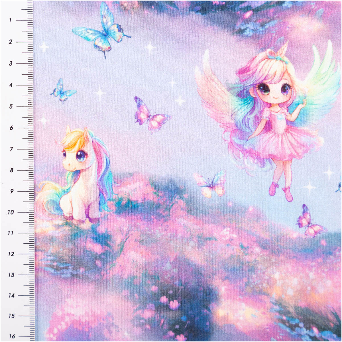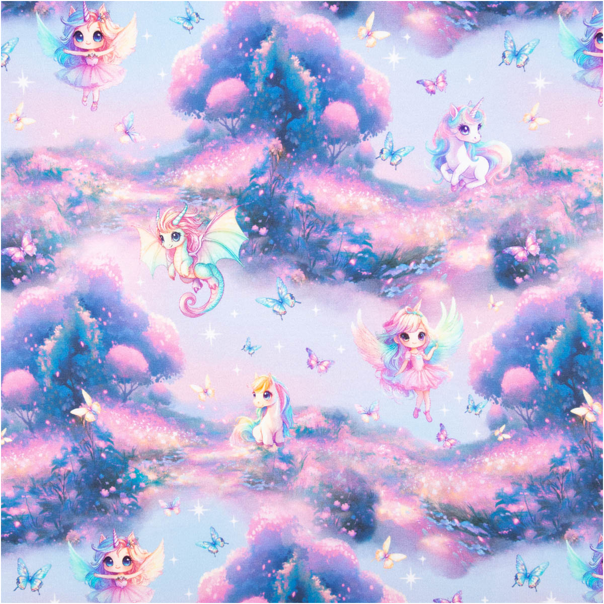 French Terry Sommersweat Fairies Digitaldruck rosa blau 1,45m Breite