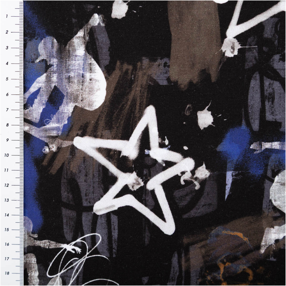 French Terry Sommersweat „Skater“ schwarz – Digitaldruck, 1,45 m Breite