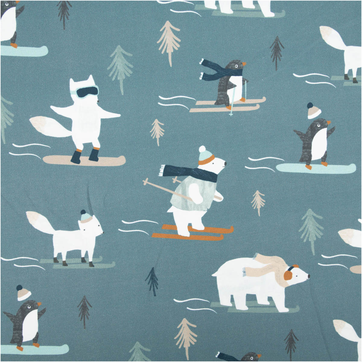 Poppy Kollektion: French Terry mit Pinguin, Eisbär & Fuchs auf Mintgrün