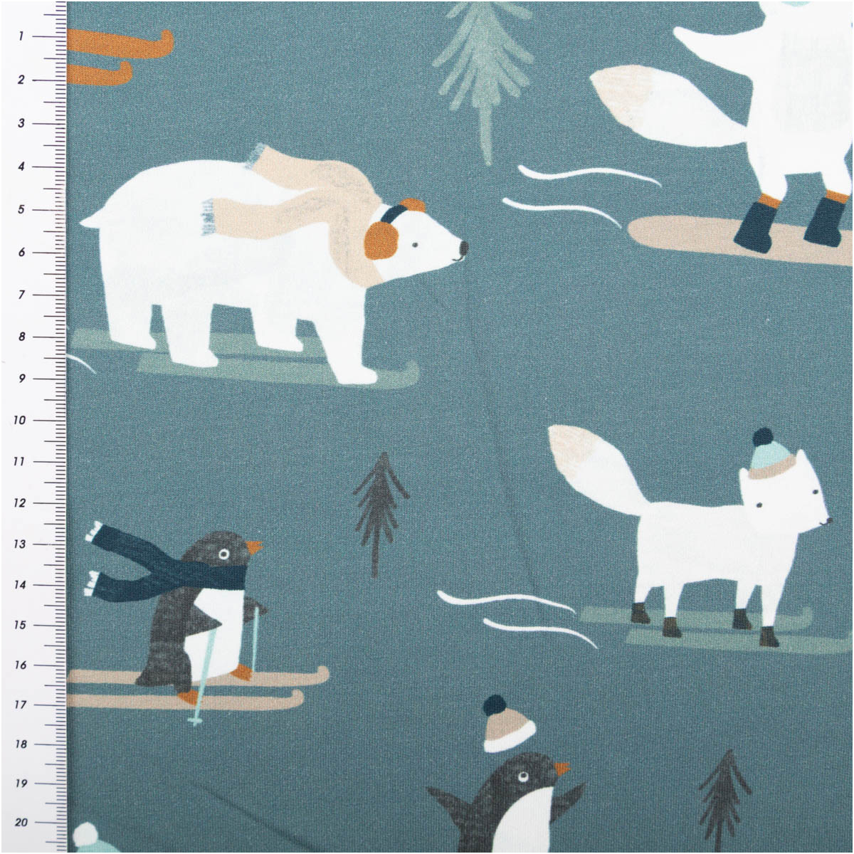 French Terry Sommersweat „Wintertiere“ mintgrün – Digitaldruck, 1,48 m Breite