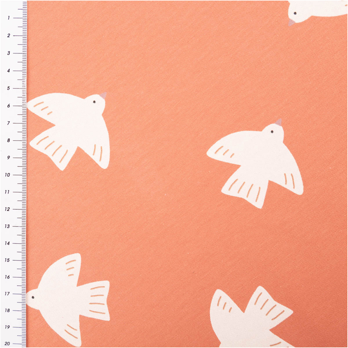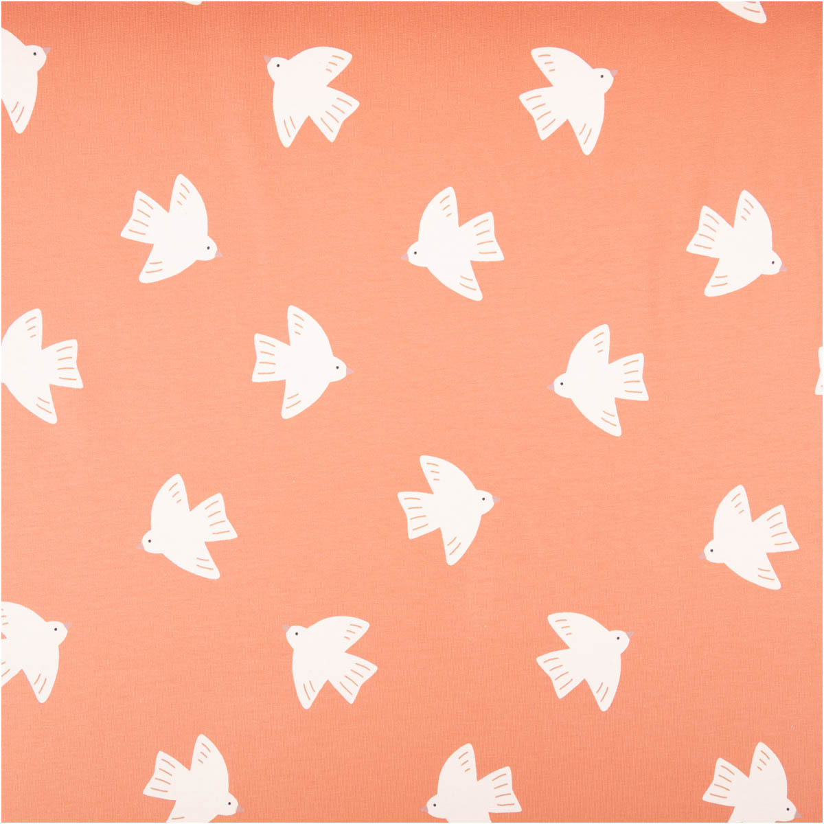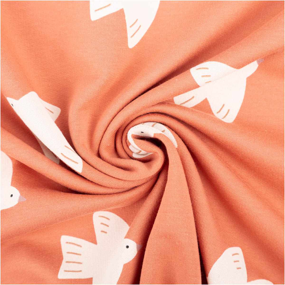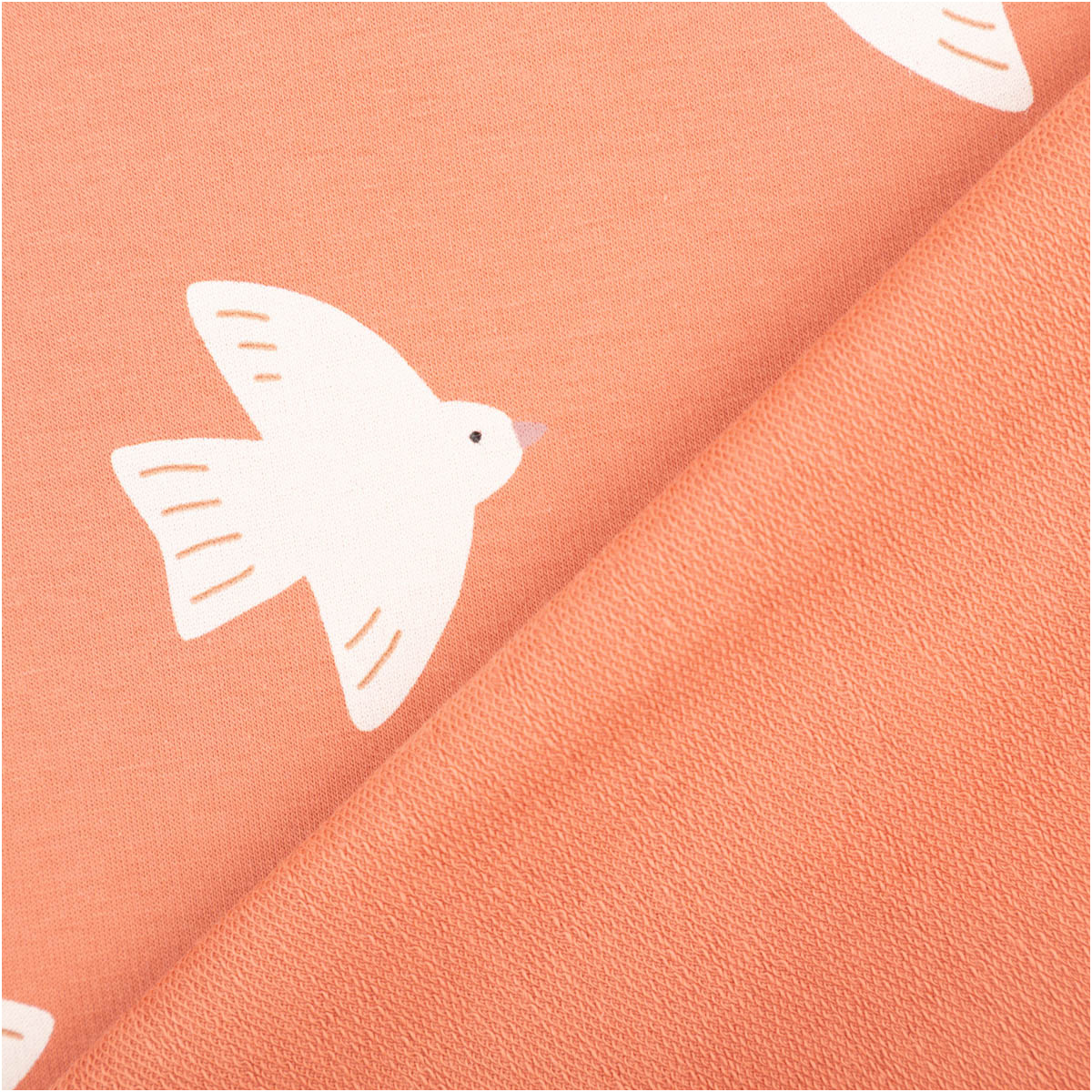 French Terry „Vögel“ rosa 150 cm – Sommersweat mit Schlingenstruktur