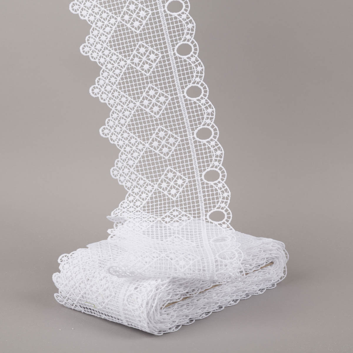 Scheibengardine Häkelspitze Stickerei Pik Karo weiß 16 cm Breite