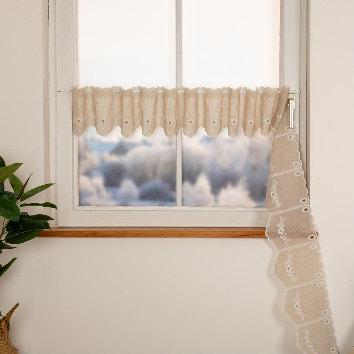 Scheibengardine Landhaus natur 20 cm – Meterware, bestickt & nähfrei