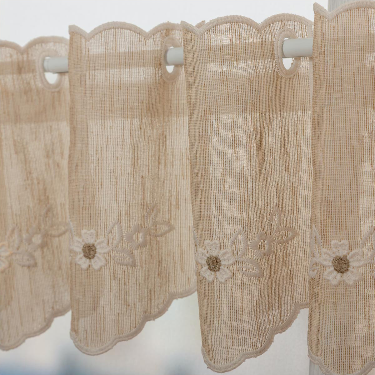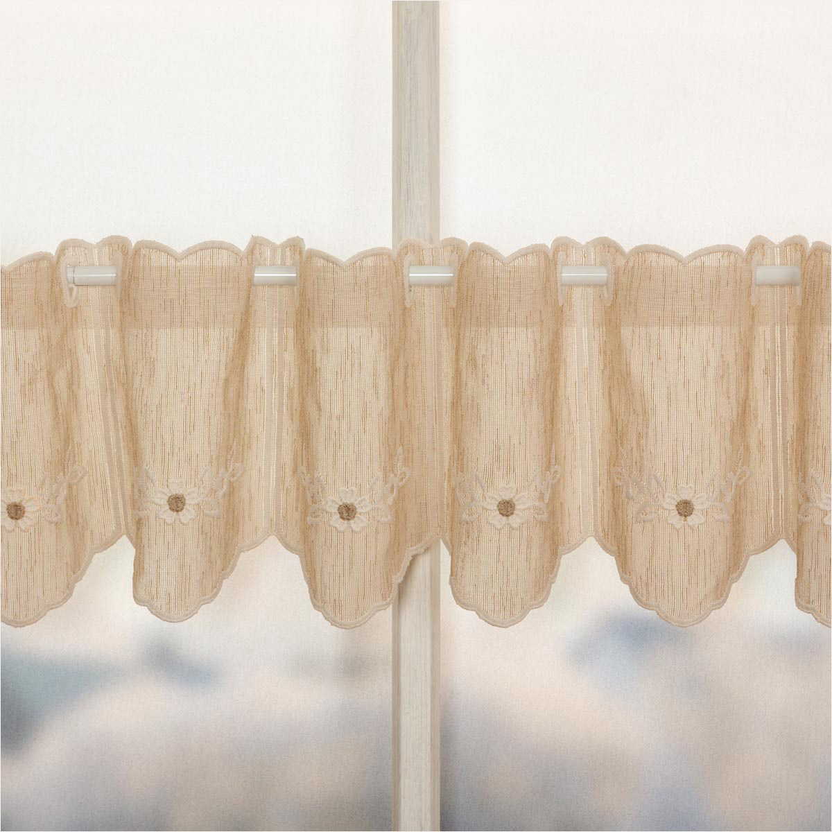Scheibengardine Meterware Landhausgardine Stickerei Blumen nähfrei natur 20cm Höhe