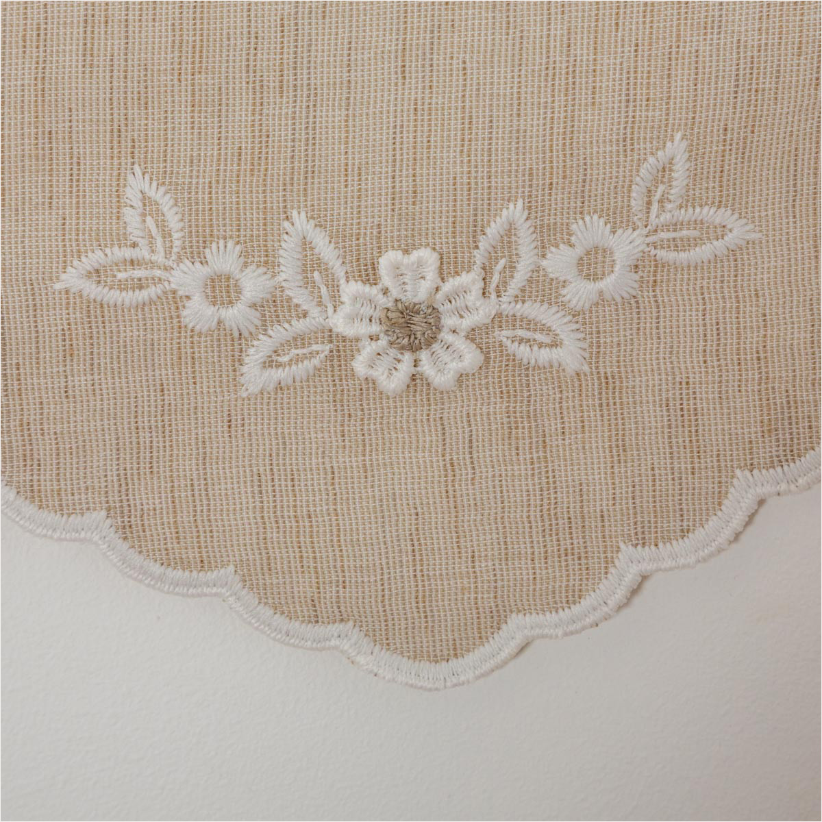 Leinenoptik in natur mit feiner Blumen-Stickerei