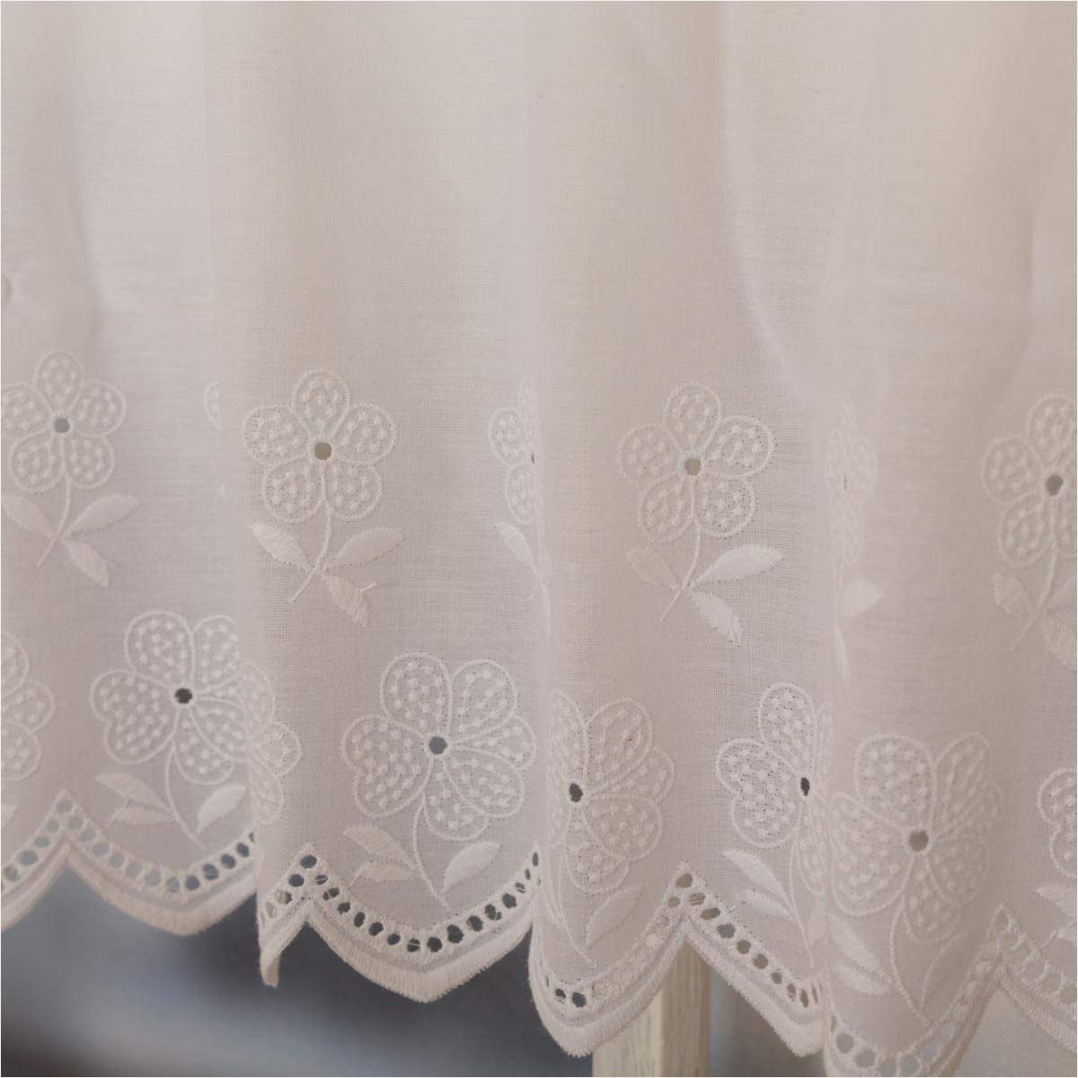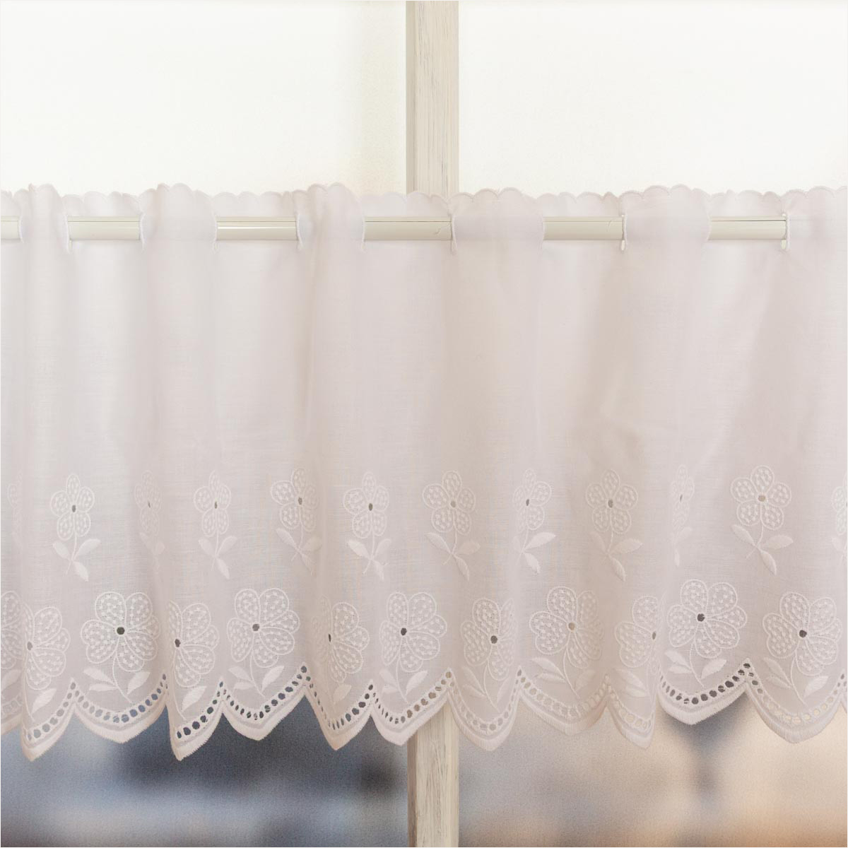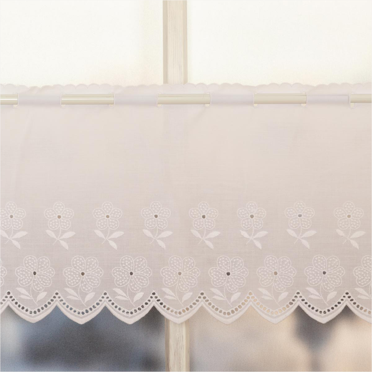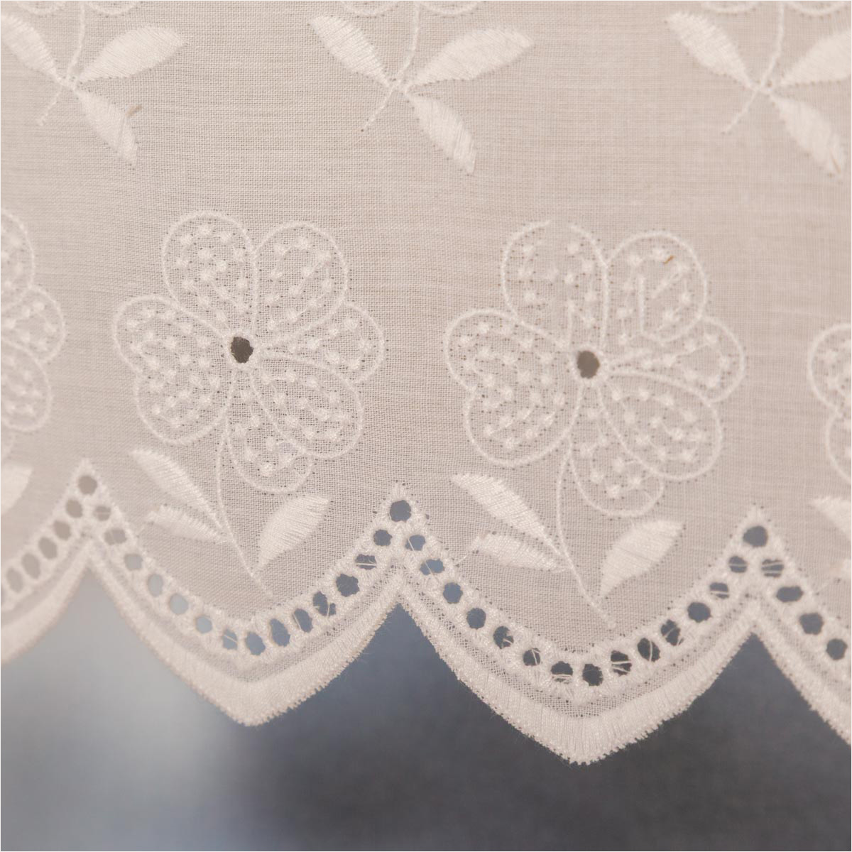 Zarte Scheibengardine mit Blumen-Stickerei – Batist Meterware 27 cm hoch