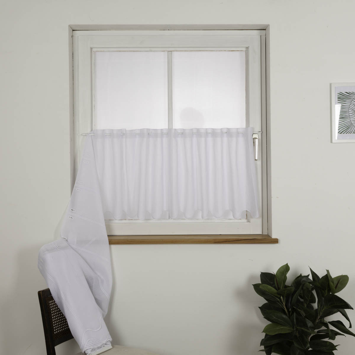 Scheibengardinen Meterware Batist Stickerei uni wollweiß 90cm hoch – Natürliches Flair für dein Fenster