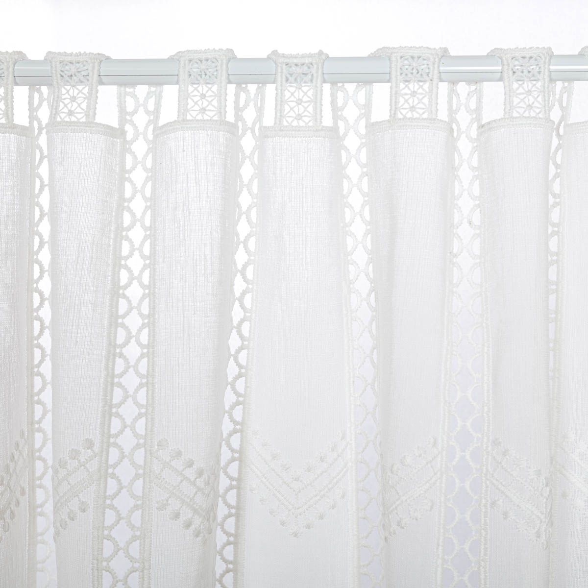 Jetzt bestellen und mit natürlicher Leinenoptik und Makramee-Stickereien eine stilvolle Fensterdekoration schaffen!