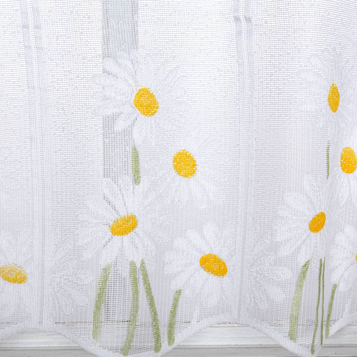 Scheibengardinen Meterware nähfrei Jacquard grob mit Margeriten-Dessin in 45cm Höhe – stilvolle Fensterdeko ohne Nähen