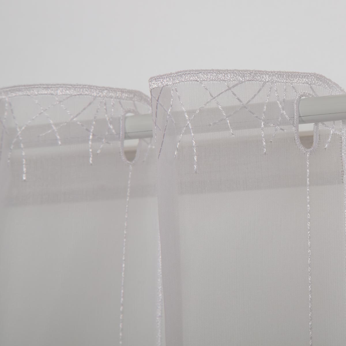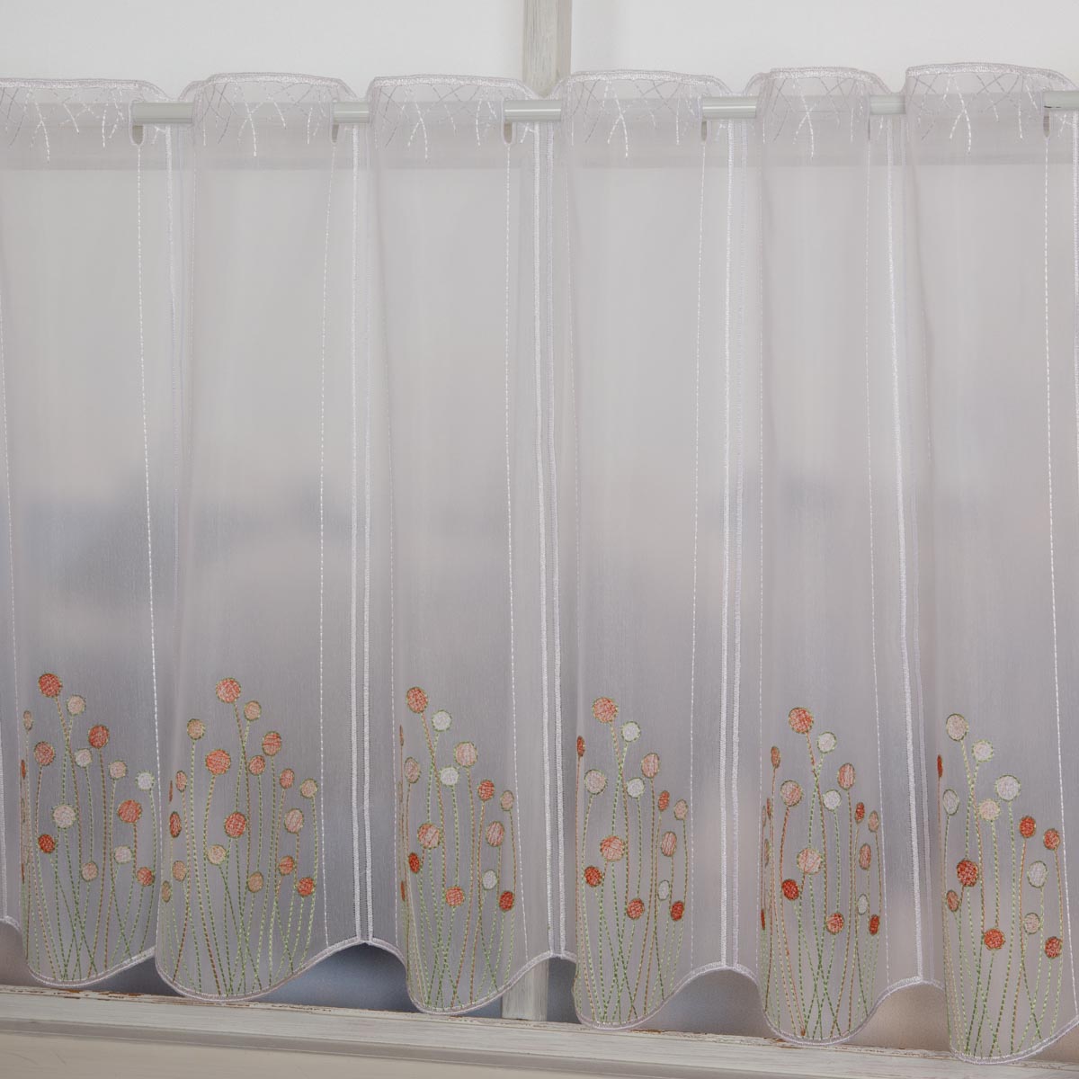 Scheibengardinen-Meterware nähfrei – Stickerei abstrakte Blumen weiß-orange (50 cm Höhe)