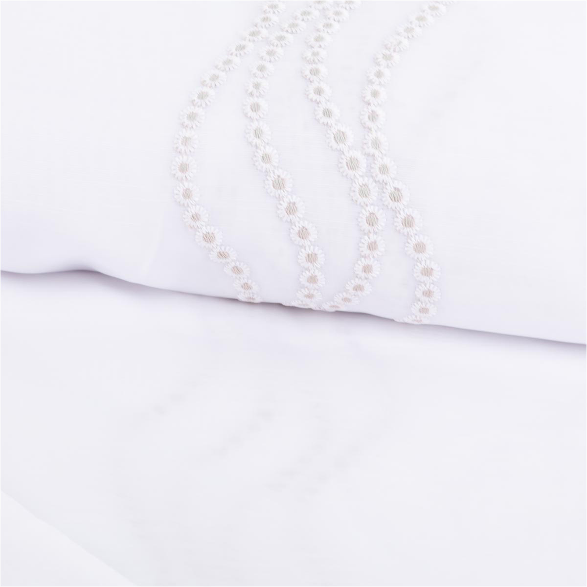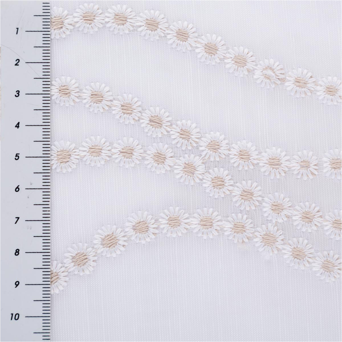 Voile in Weiß mit beigefarbiger Pünktchen-Stickerei