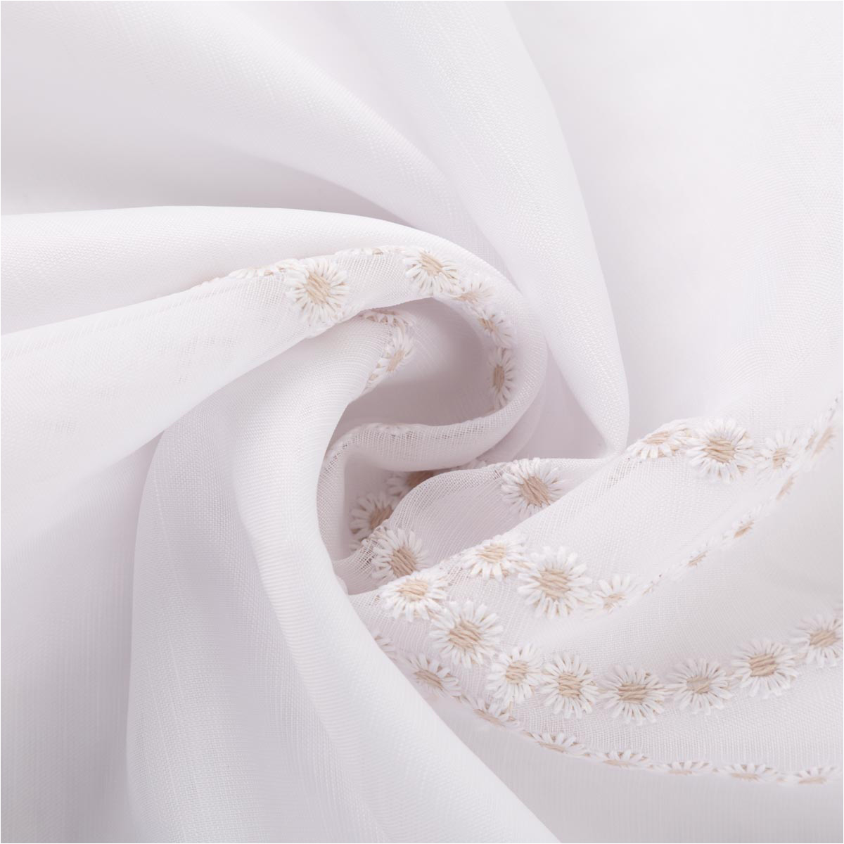 Transparenter Voile in Weiß mit feiner Pünktchen-Stickerei in Beige und dekorativer Bogenkante