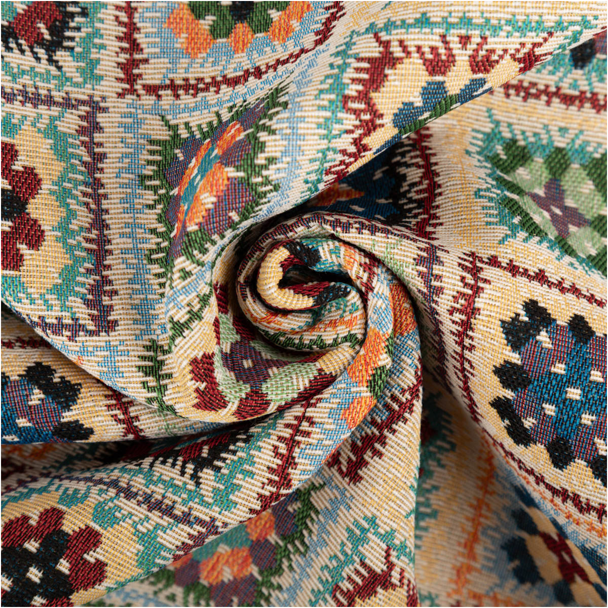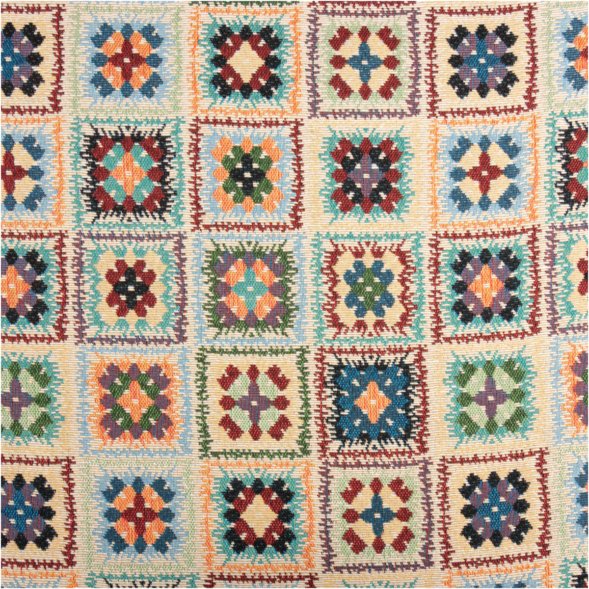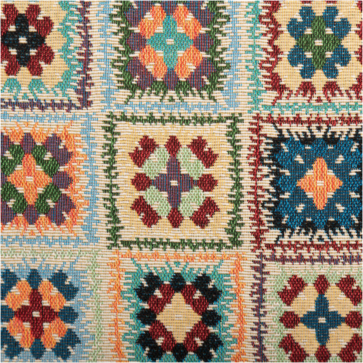 Dieser hochwertige Gobelin Stoff im Vintage-Look begeistert mit seinem detailreichen Häkelblumen-Patchwork-Design. Die farbenfrohen Quadrate erinnern an handgearbeitete Granny Squares und bringen eine warme, wohnliche Atmosphäre in deine Näh- und Dekoideen. Als Meterware eignet sich der Stoff perfekt für individuelle Projekte mit besonderem Charakter.
